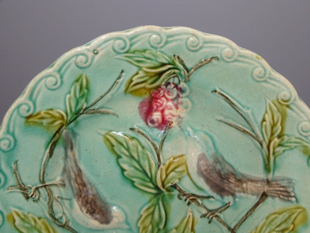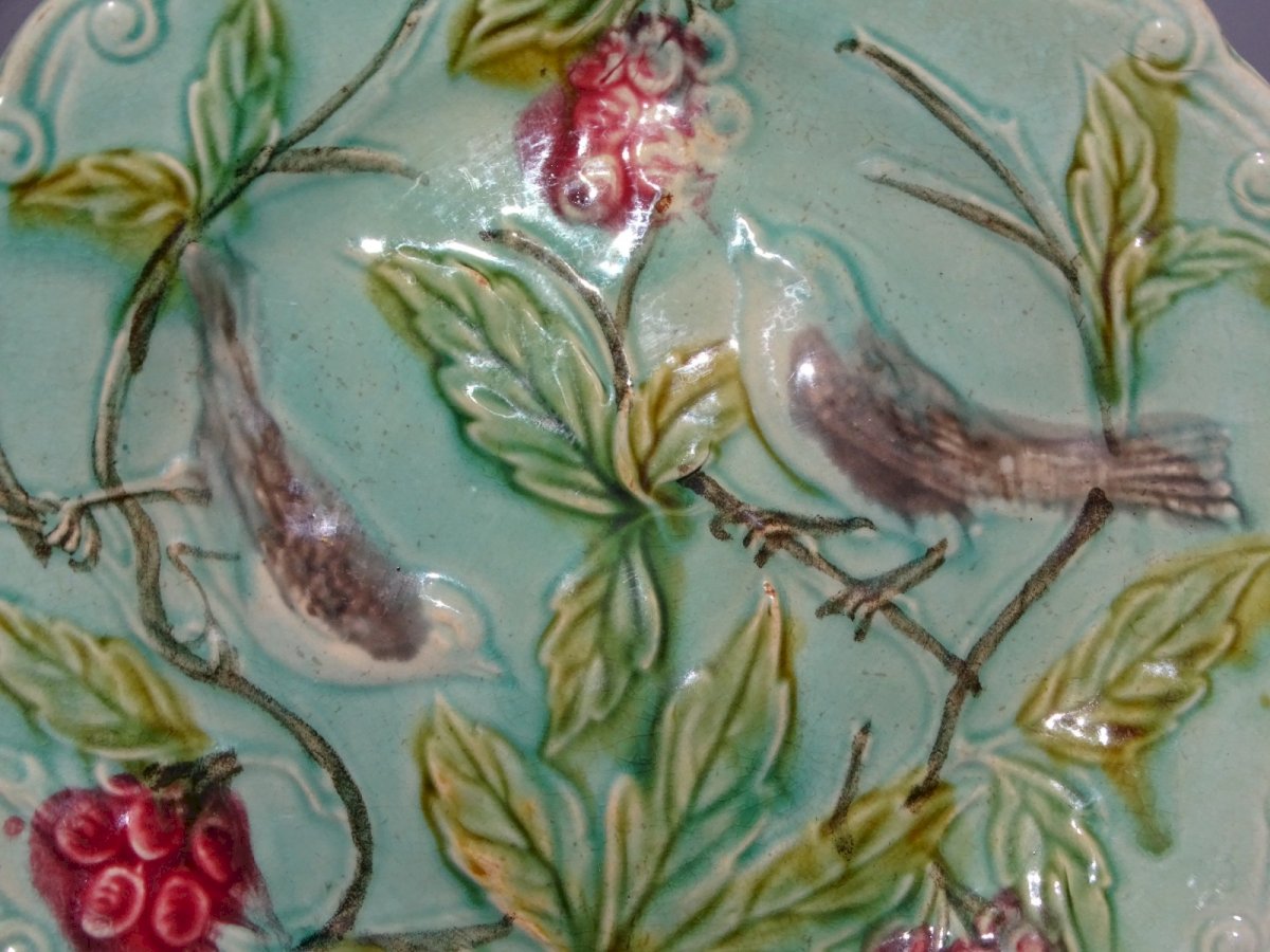 Beautiful decorative earthenware plate featuring 2 birds on fruit tree branches - minor crazing - (see photos) found in an attic, in good condition - Ref. 31151117/2923 - Diameter 21.2 cm - Height 2.8 cm - Weight 0.341 kg To contact me, my email address: SHIPPING POSSIBLE VIA MONDIAL RELAY or COLISSIMO upon request VERY GOOD PACKAGING GUARANTEED THANK YOU for carefully viewing ALL the PHOTOS as THEY ARE AN INTEGRAL PART of the DESCRIPTION and ALLOW YOU TO SEE the ITEM BETTER with ITS POTENTIAL SMALL DEFECTS -