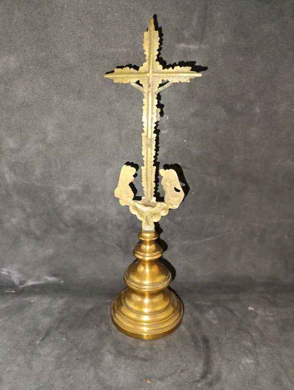 beautiful brass and bronze Catholic cross/altar in good condition, undoubtedly 19th century, normal signs of wear from time, height 28cm