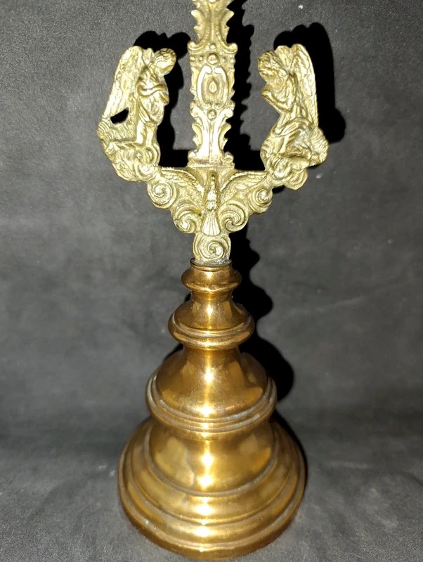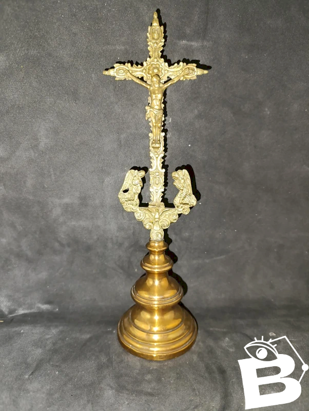 Old hotel crucifix with angel decoration in brass from the 19th century in good condition (made in second-hand shops)