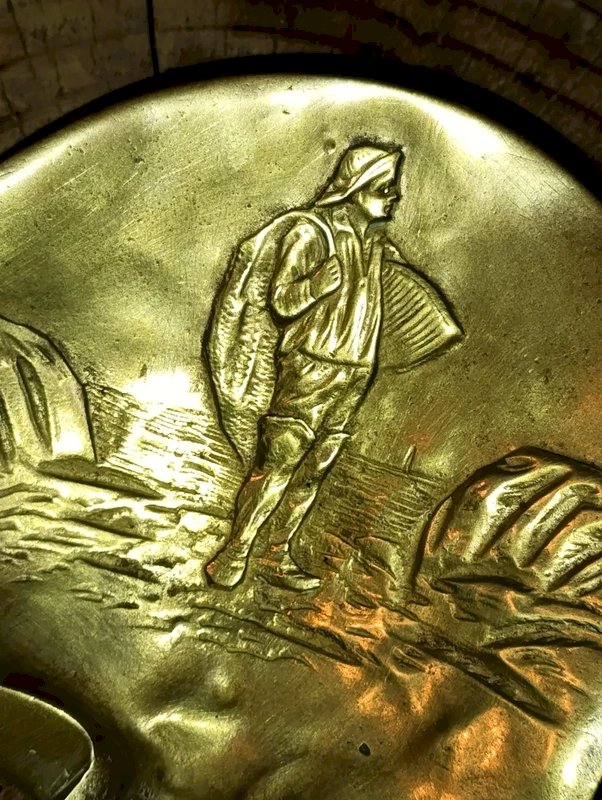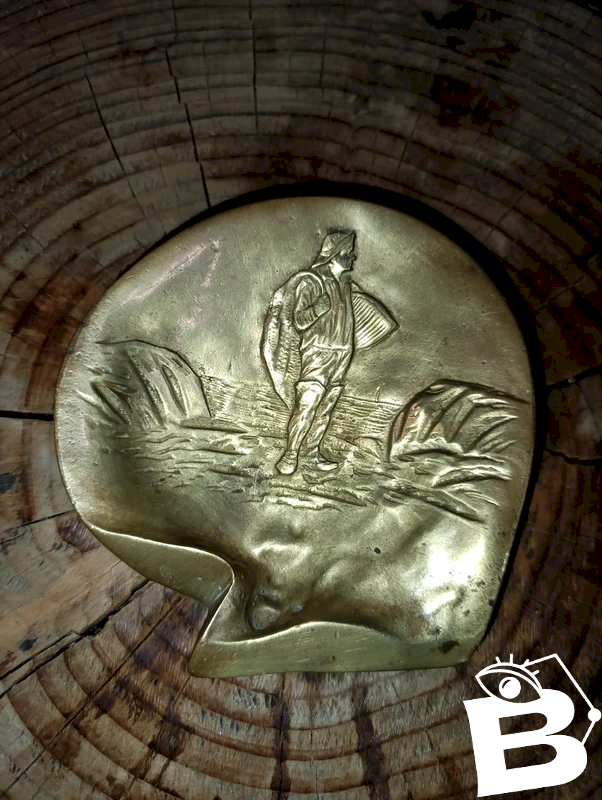 Bronze pocket emptier with hunting decor, Danish made, signed AEDEL Malm, in good condition (made in second-hand)