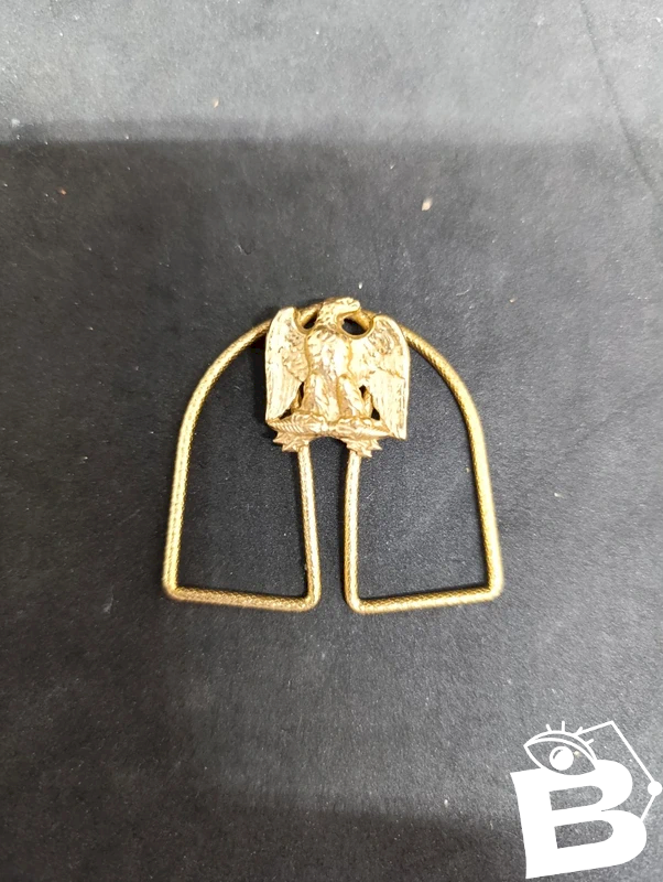 Beautiful eagle-themed brooch or clip in Empire style, gold-plated, in good condition, rare model, dimensions 4.7 x 4.5 cm.
