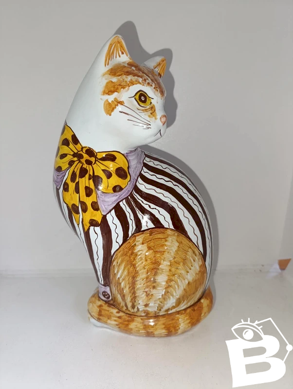 Beautiful ceramic cat sculpture from Rouen signed A. Augy in good condition (made in China).