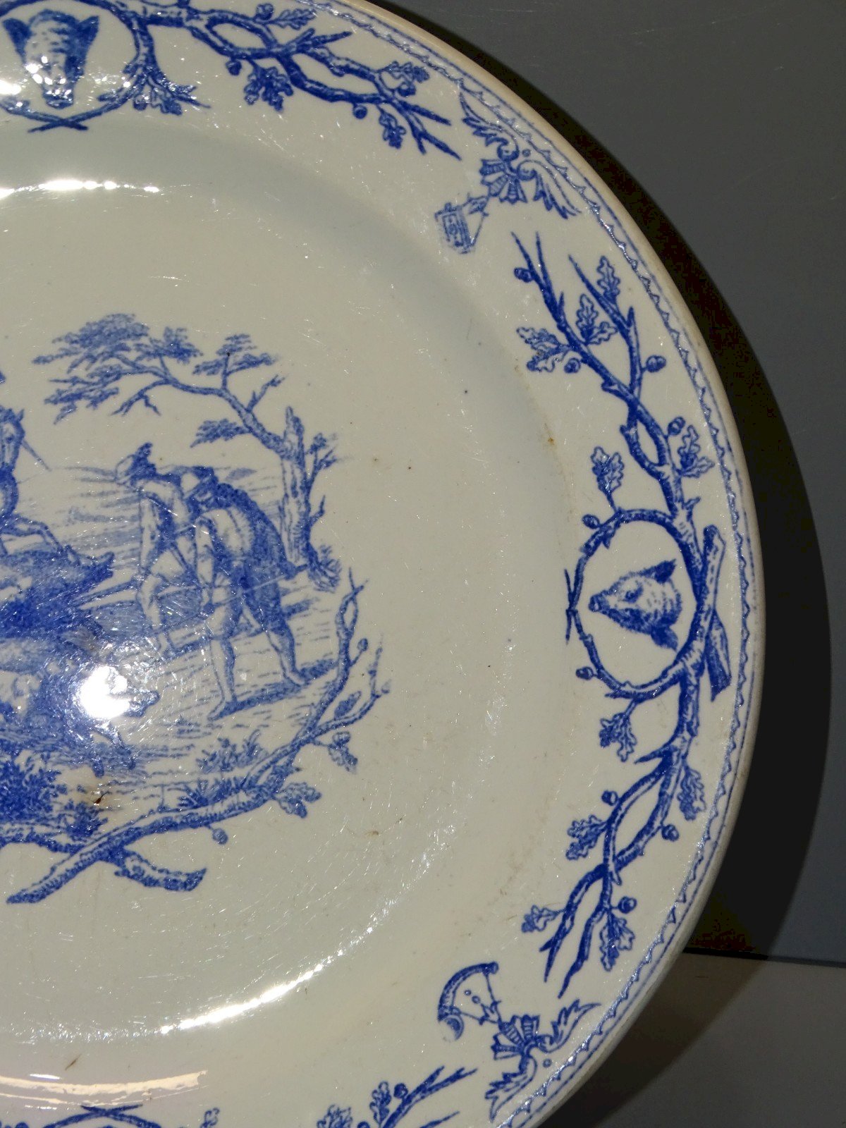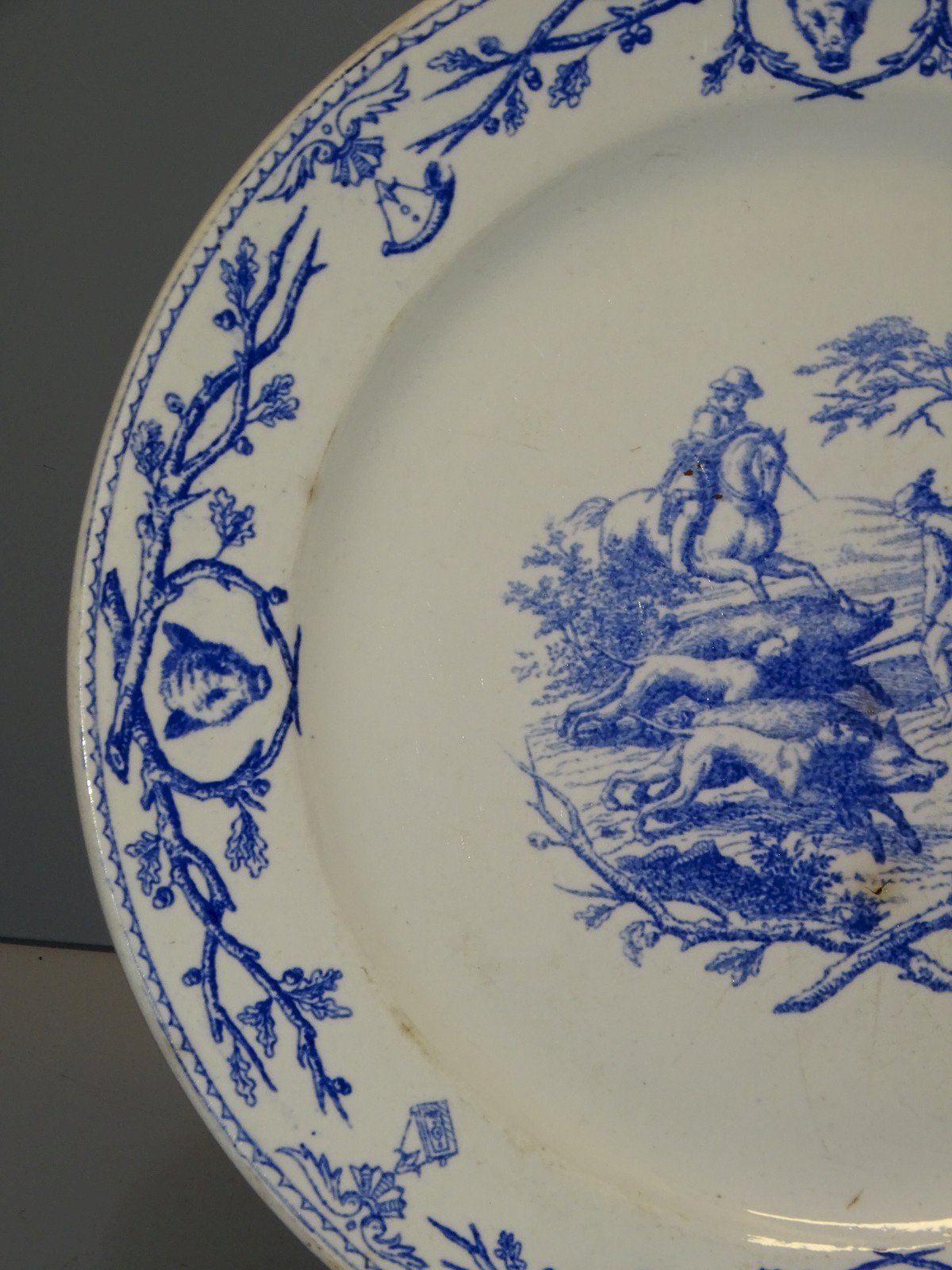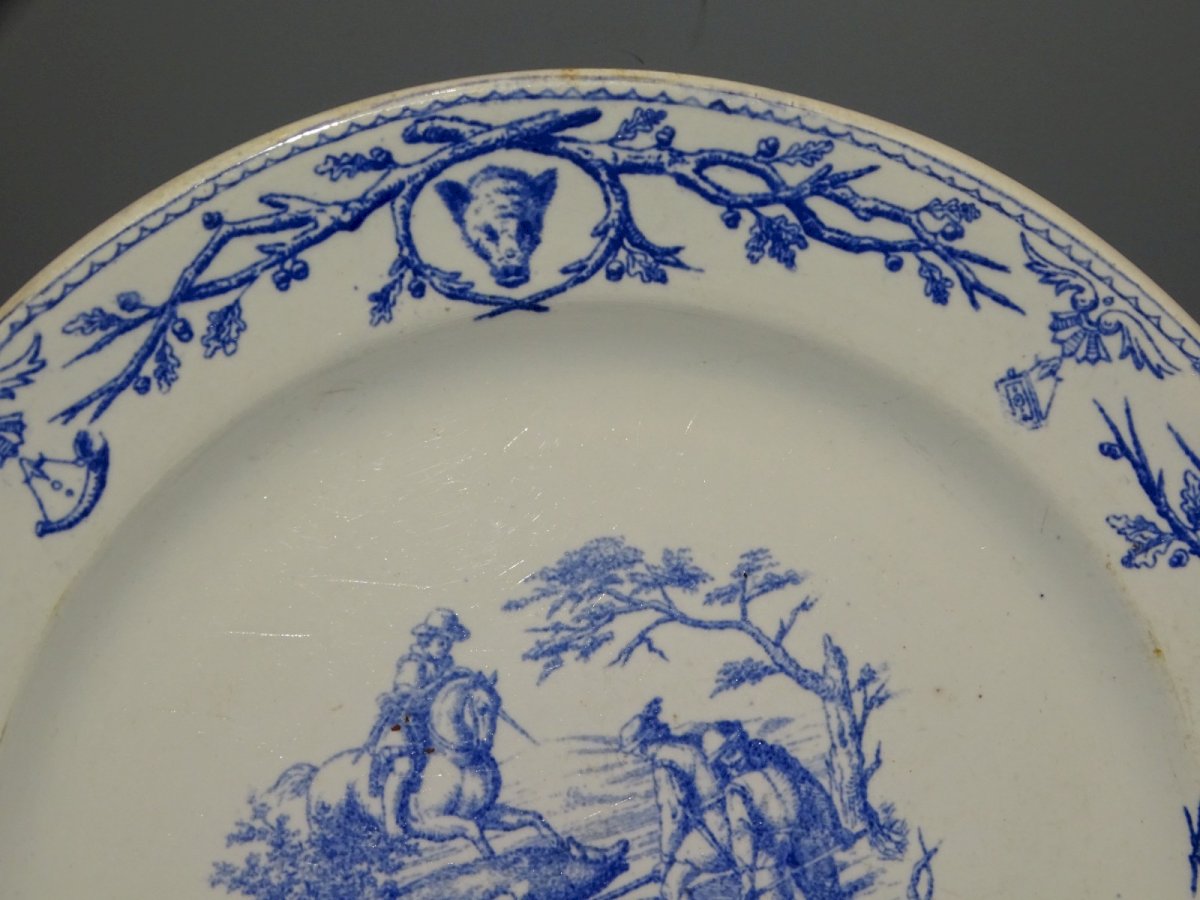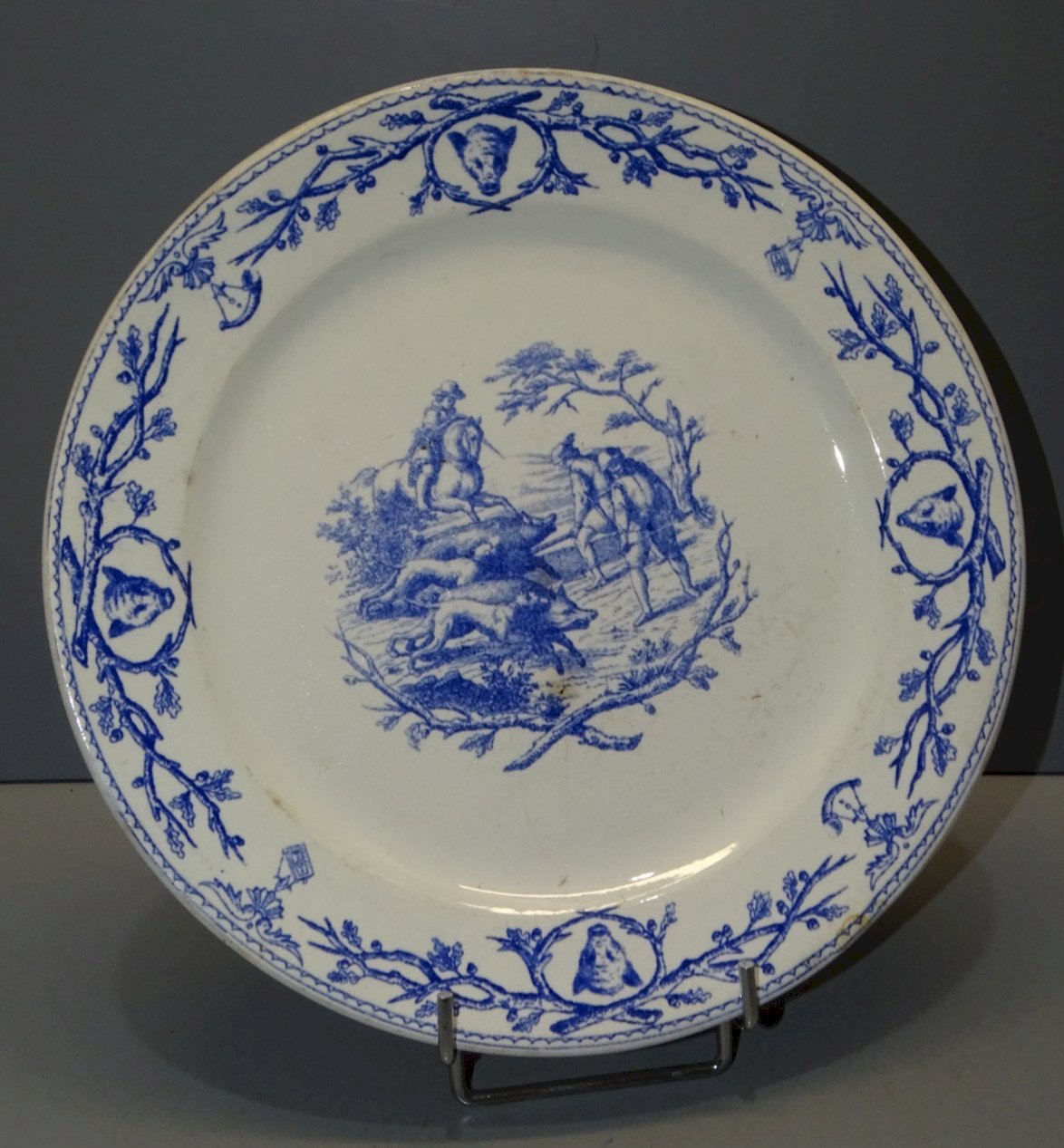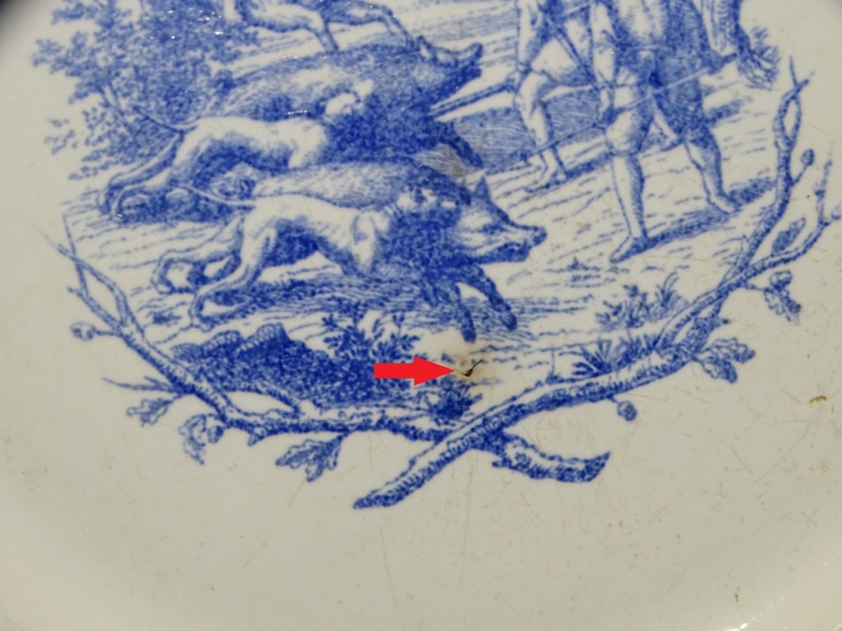 Beautiful ceramic plate from Gien with a nice mark on the back dating from 1860 - hunting scene with a wild boar - some signs of use on the glaze, a small blackened chip and a small rust stain on the edge (see photos) - in good used condition, without cracks, in its found state - ref. 1V250703/270 - a similar first piece in progress see last photo under No. 1V250703/269 Diameter 24.4 cm - Weight 0.441 kg SHIPPING POSSIBLE VIA MONDIAL RELAY or COLISSIMO upon request VERY GOOD PACKAGING GUARANTEED PLEASE BE SURE TO LOOK AT ALL THE PHOTOS as THEY ARE AN INTEGRAL PART OF THE DESCRIPTION and ALLOW YOU TO SEE the ITEM AS BEST AS POSSIBLE with ITS SMALL POSSIBLE DEFECTS -