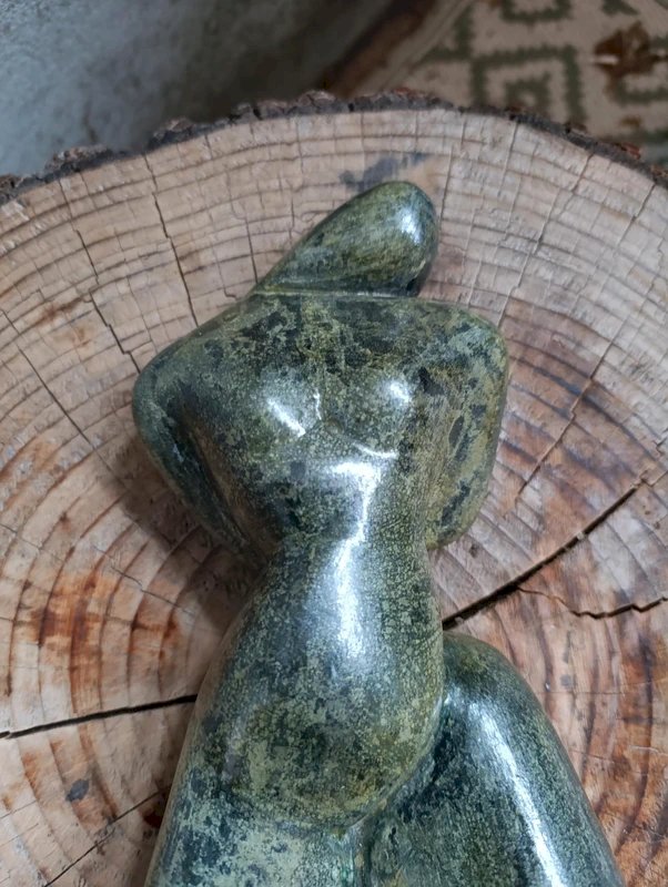 beautiful ceramic sculpture decor of a seated woman signed Odile in good condition