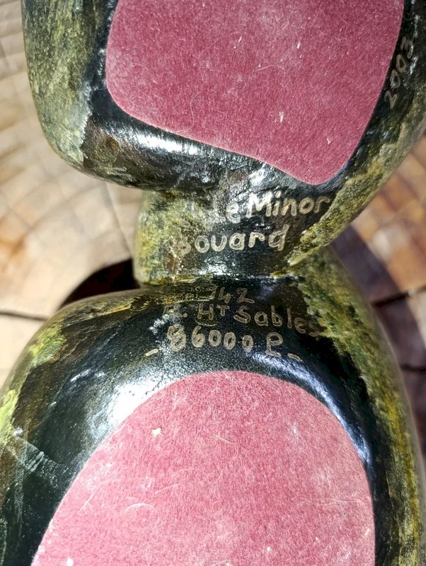 Original glazed stoneware sculpture signed with character decor in good condition.