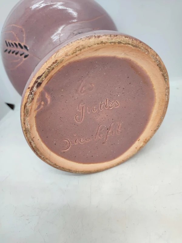 Pretty ceramic vase with floral decoration signed Les grottes Dieulefit in good condition (made in second-hand goods)