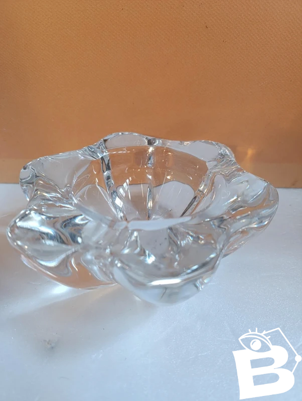 Beautiful crystal ashtray from the Val St Lambert factory in good condition, diameter 17.5 cm, height 7 cm, just a few small signs of wear due to its age.