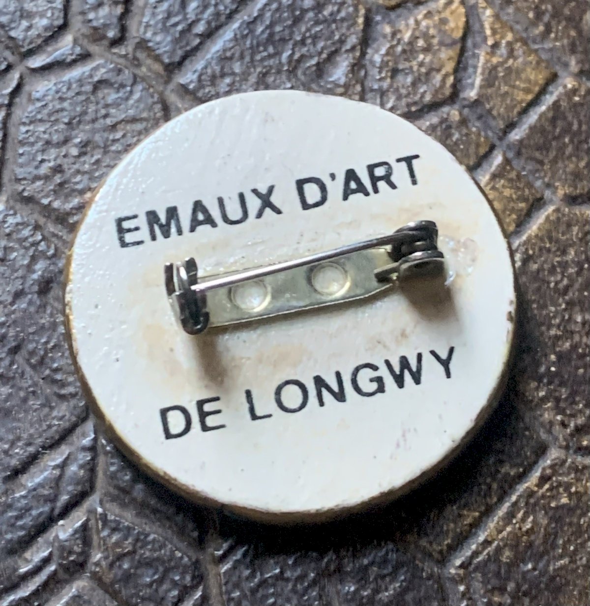 Beautiful antique brooch Enamels of Longwy Floral design on a gold background Very good condition Diameter: 3.4 cm Country of manufacture: France