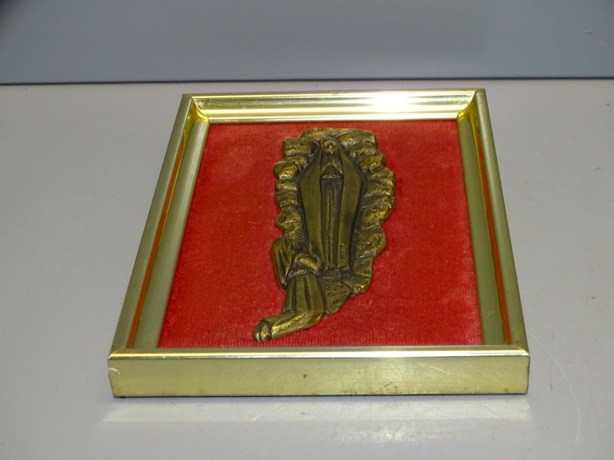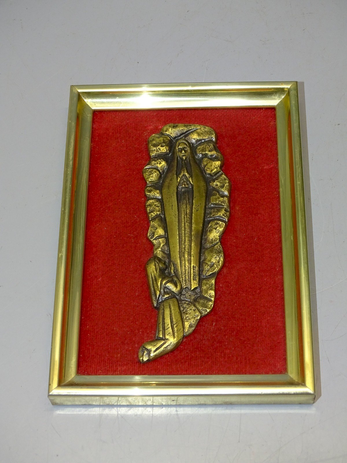 Pretty small frame with the Virgin Mary in bronze at the center on red velvet - brass frame, attic juice (see photos) - In good used condition - Ref: 1V251219/7 - frame 15.6 x 11 cm - Virgin approximately 11.9 x 4 cm - Weight 167 g - For any questions: SHIPPING POSSIBLE VIA MONDIAL RELAY or COLISSIMO upon request VERY GOOD PACKAGING GUARANTEED THANK YOU for LOOKING AT ALL the PHOTOS as THEY ARE AN INTEGRAL PART of the DESCRIPTION and ALLOW you to SEE the OBJECT AT ITS BEST with ITS POSSIBLE SMALL DEFECTS - Condition: Used: Item has been used. Please refer to the seller's description for more details...Used: Item has been used. any imperfections.