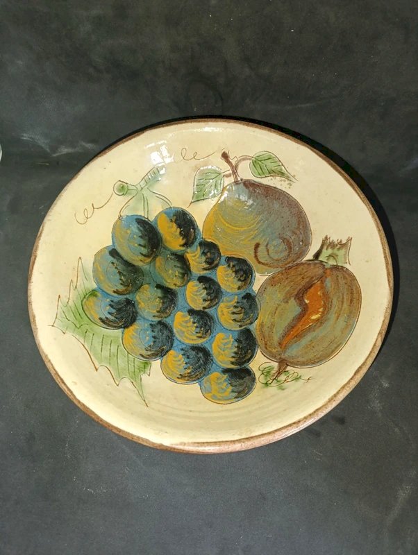 beautiful fruit-decorated bowl signed puigdemont in good condition just a small缺 at the back likely due to an old support (see photos) diameter 24cm height 7cm...