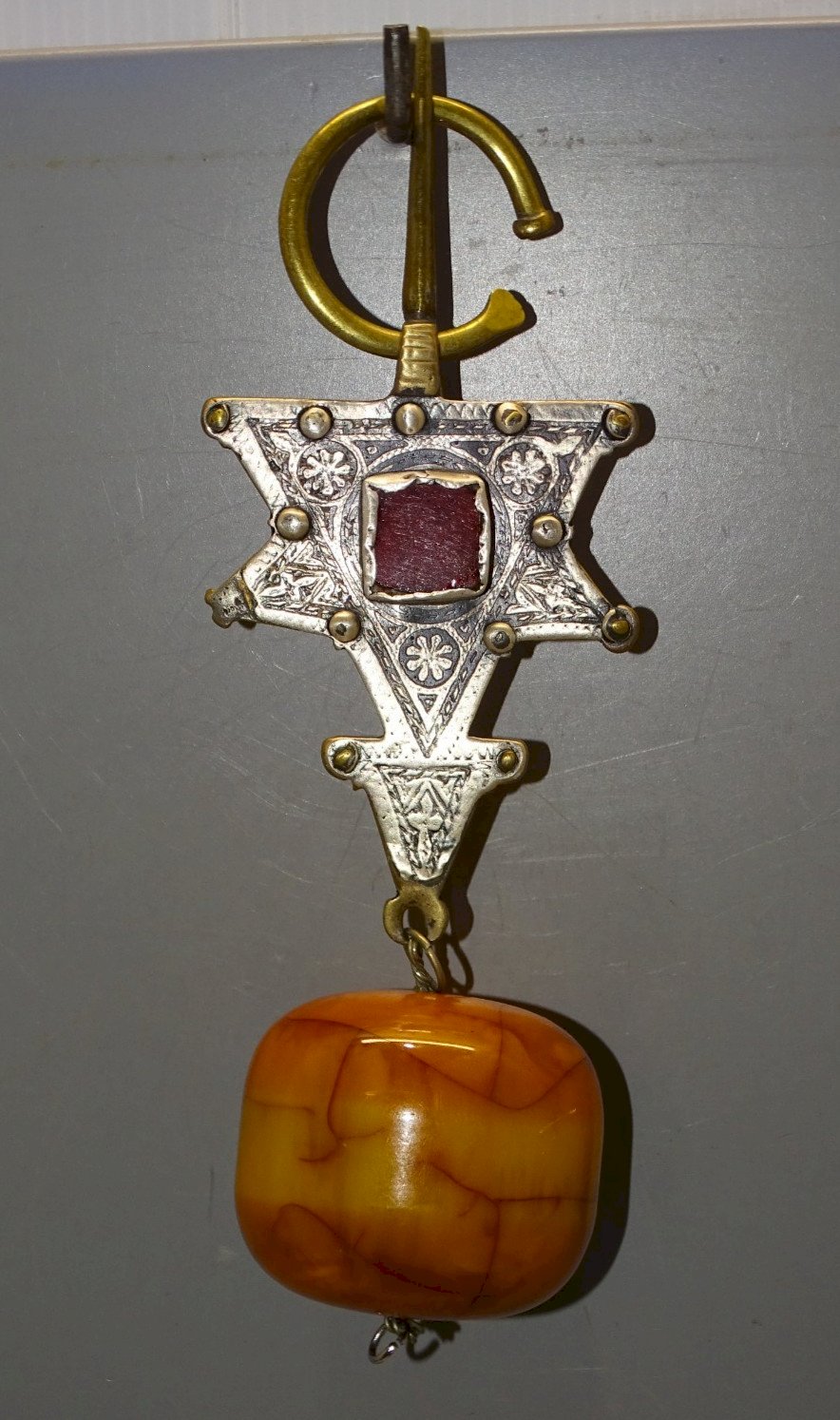 Beautiful Berber fibula with copal amber ball - no hallmark, period and country of origin to be determined - with old repairs (see photos) - In good used condition - Ref: 1V240718/308 - Length 18 cm - Ball 4.80 x 5.43 cm - Weight 197 g - For any questions: SHIPPING POSSIBLE VIA MONDIAL RELAY or COLISSIMO upon request, VERY GOOD PACKAGING GUARANTEED. THANK YOU for CAREFULLY LOOKING AT ALL the PHOTOS as THEY ARE AN INTEGRAL PART of the DESCRIPTION and ALLOW YOU TO SEE the ITEM AT ITS BEST with ITS POSSIBLE SMALL DEFECTS - Type: Jewelry Origin: North Africa