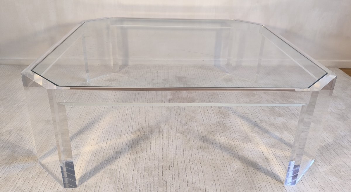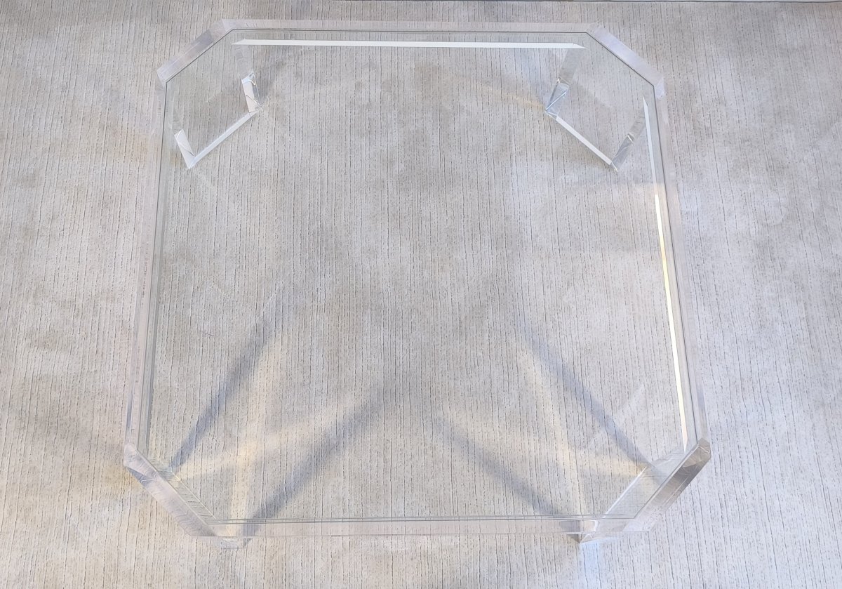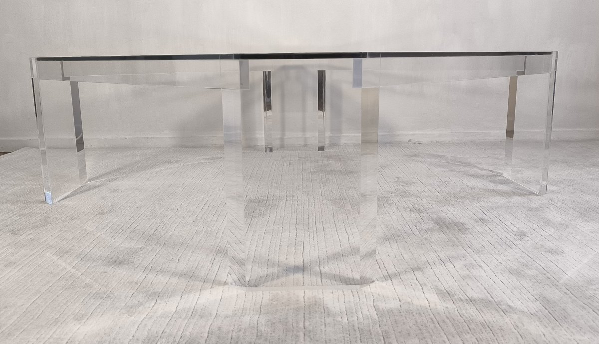 Its base made of clear Altuglas® (30 mm thick) and its clear glass top (8 mm thick) provide exceptional transparency and an airy visual effect, typical of David Lange's creations.
