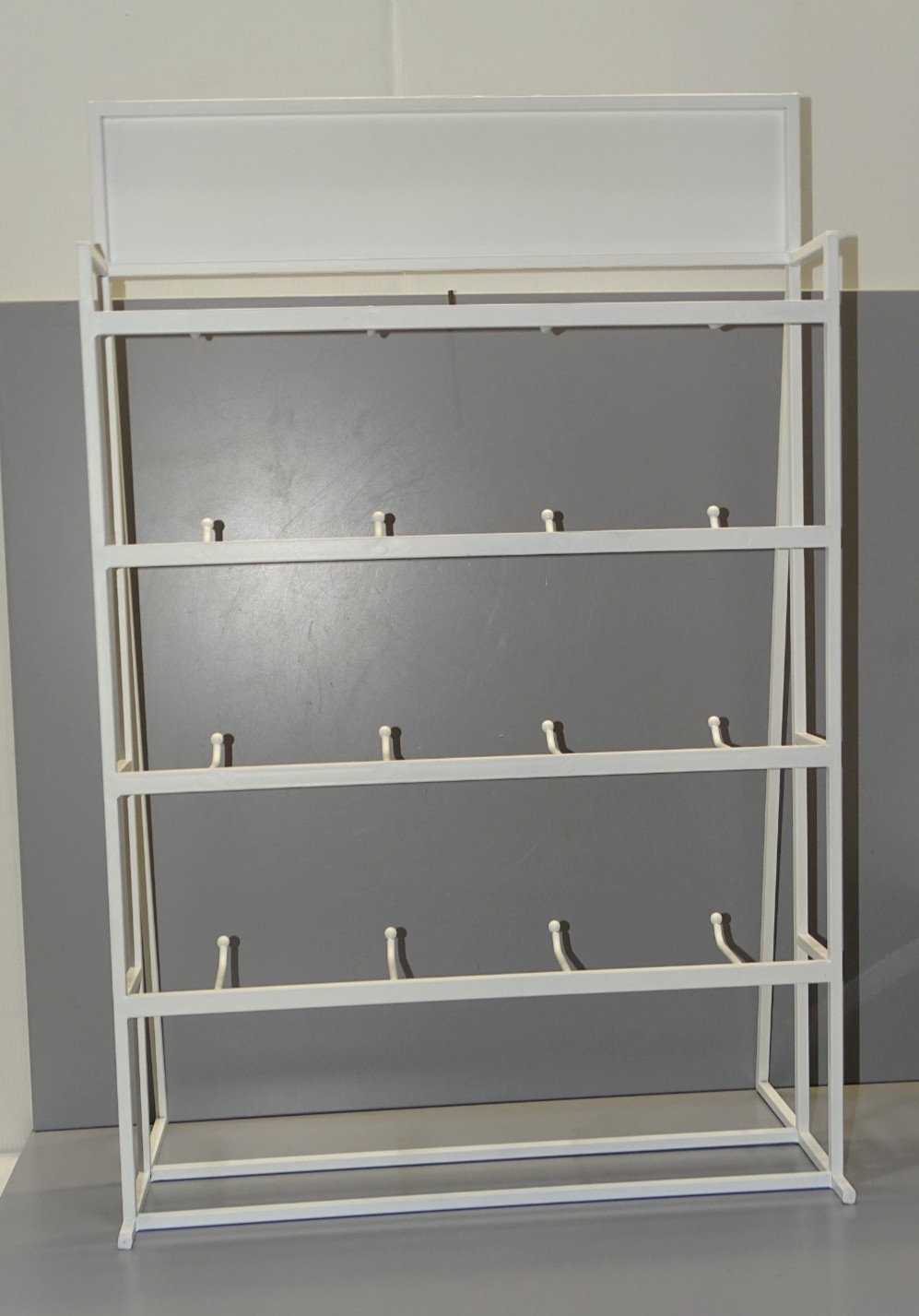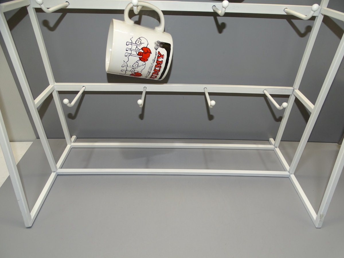 Beautiful shelf Mathilde Metal painted white support for mugs or other with 16 hooks - attic find - in good used condition (see photos) - The 3 mugs are there for example and are not part of the sale - Ref. 42141025/117 - Length 45.6 cm - Width 22.5 cm - Height 70.2 cm - Weight 1.680 kg - SHIPPING via Mondial Relay or Colissimo upon request - GUARANTEED very protective PACKAGING - THANK YOU for LOOKING at ALL the PHOTOS as THEY ARE AN INTEGRAL PART of the DESCRIPTION and ALLOW you to SEE the ITEM at its BEST - Color: White Material: Metal