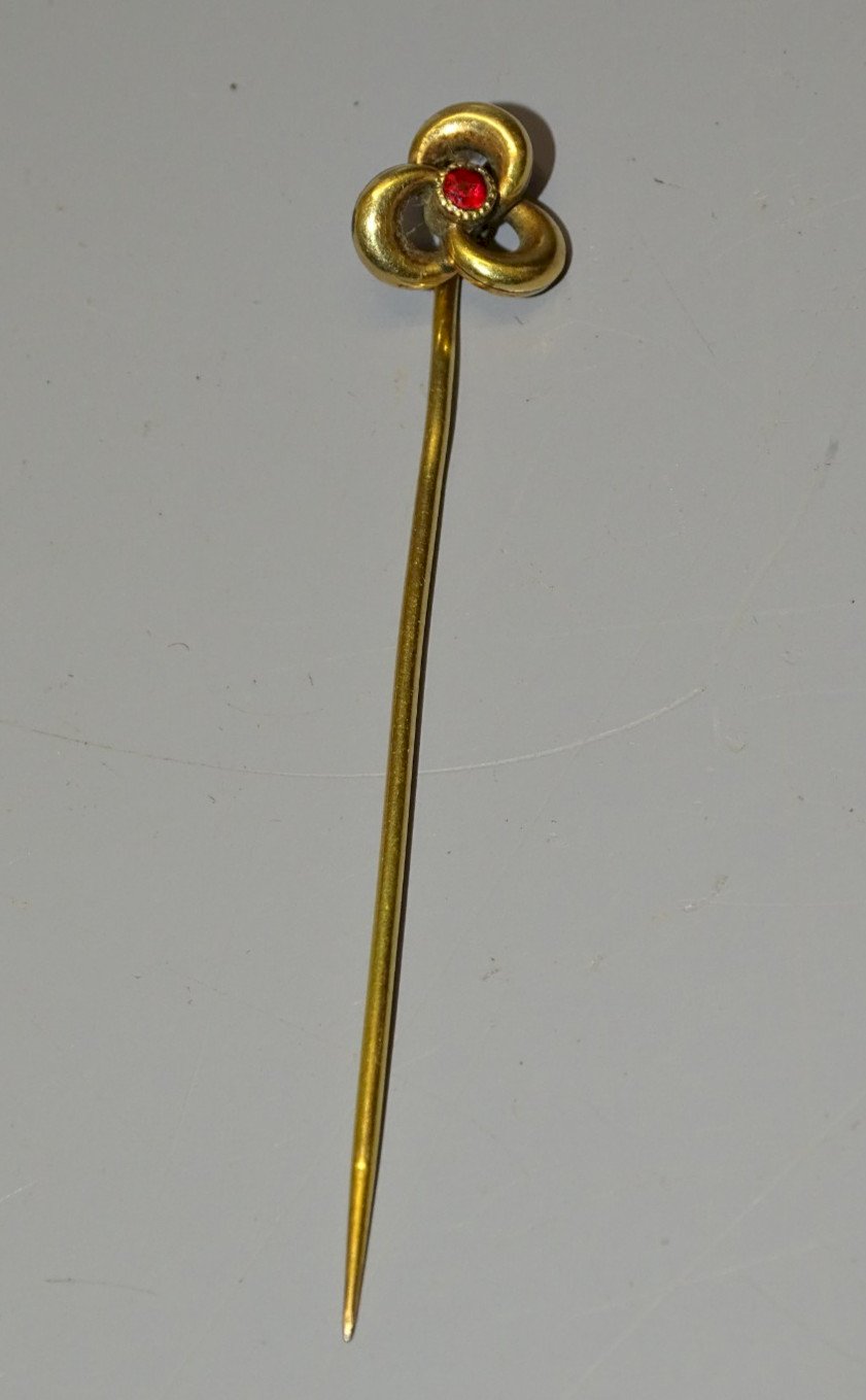 Beautiful old tie pin in Fix with a small red stone in the center - slightly twisted stem (see photos) - in good used condition, attic patina - Ref.: 1V240718/422 - Length 6.4 cm - Flower 1.06 x 0.99 cm - Weight 1.27 g SHIPPING POSSIBLE VIA MONDIAL RELAY or COLISSIMO upon request VERY GOOD PACKAGING GUARANTEED THANK YOU for CAREFULLY LOOKING AT ALL the PHOTOS as THEY ARE AN INTEGRAL PART of the DESCRIPTION and ALLOW you to SEE the ITEM IN THE BEST LIGHT with ITS POSSIBLE IMPERFECTIONS - Condition: Used: Item has been worn. ...Used: Item has been worn. possible imperfections.