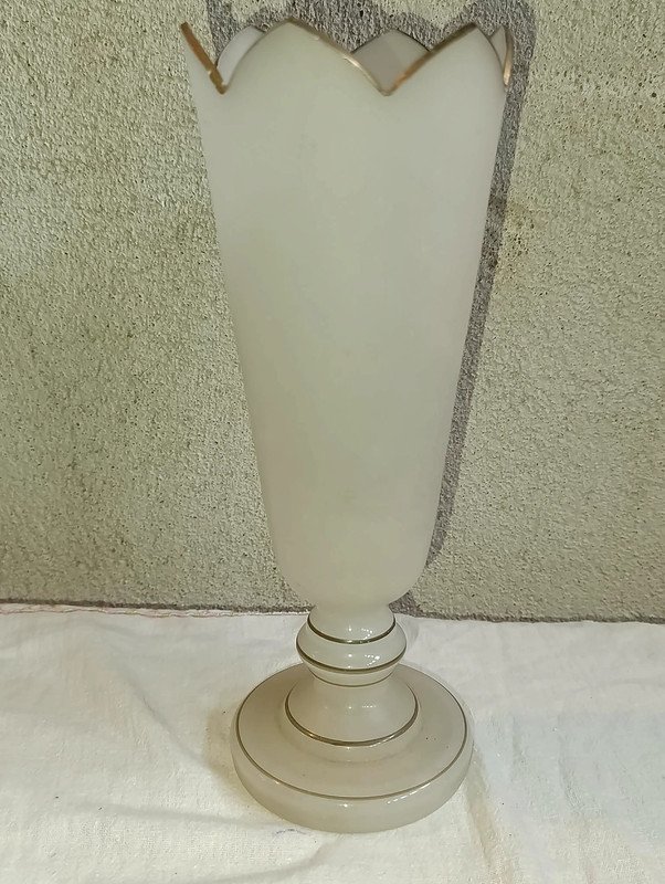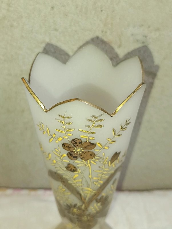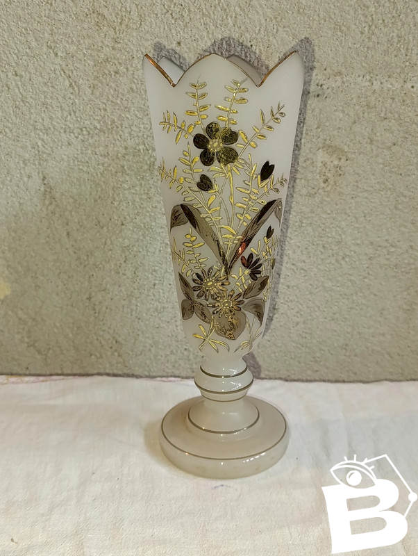 beautiful opaline vase from the late 19th century with floral decoration and gilding in good condition, minor normal wear on the decoration, height 25cm...
