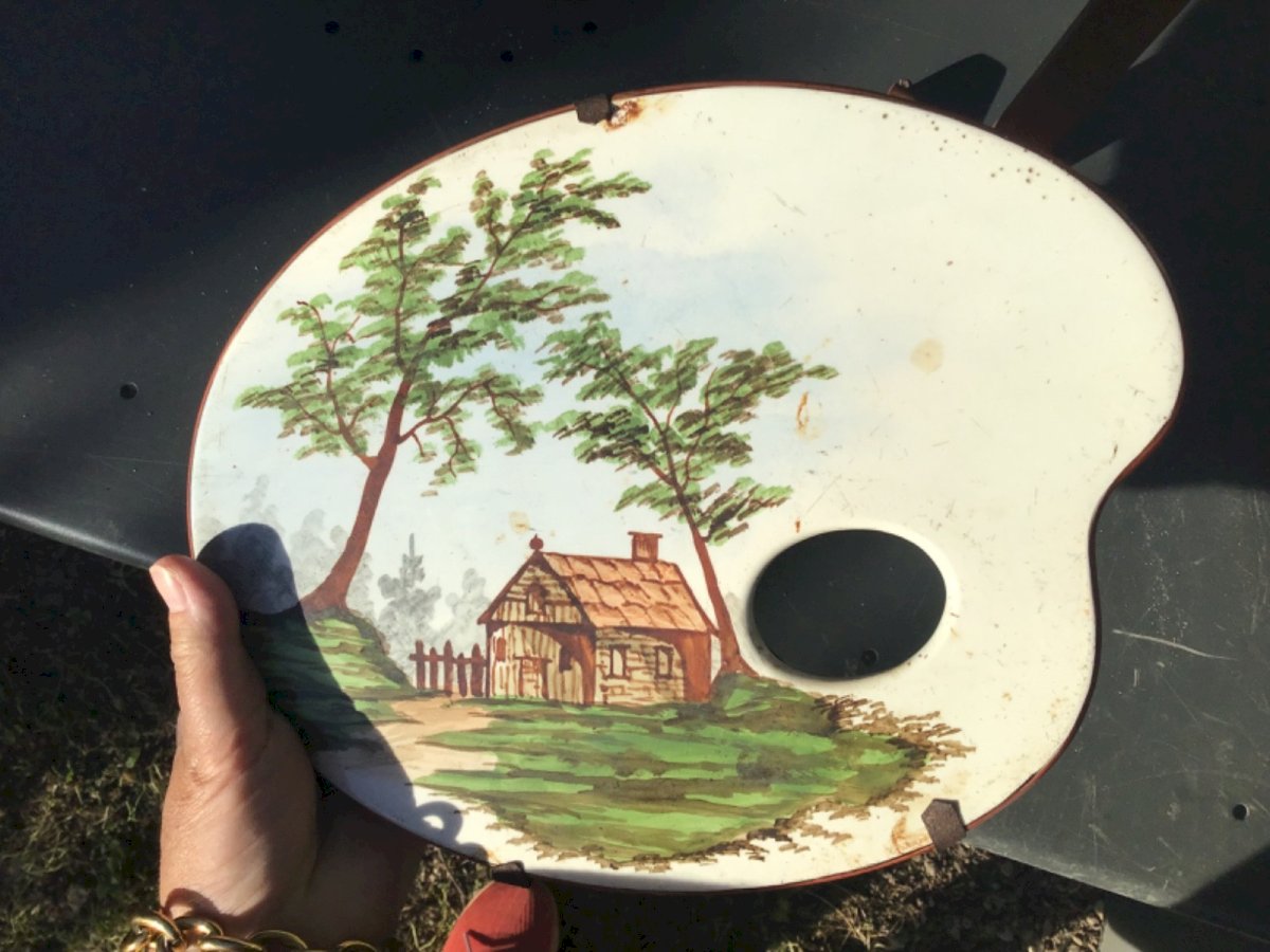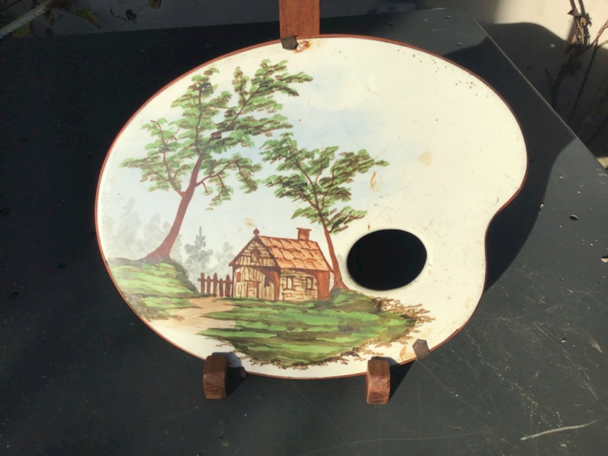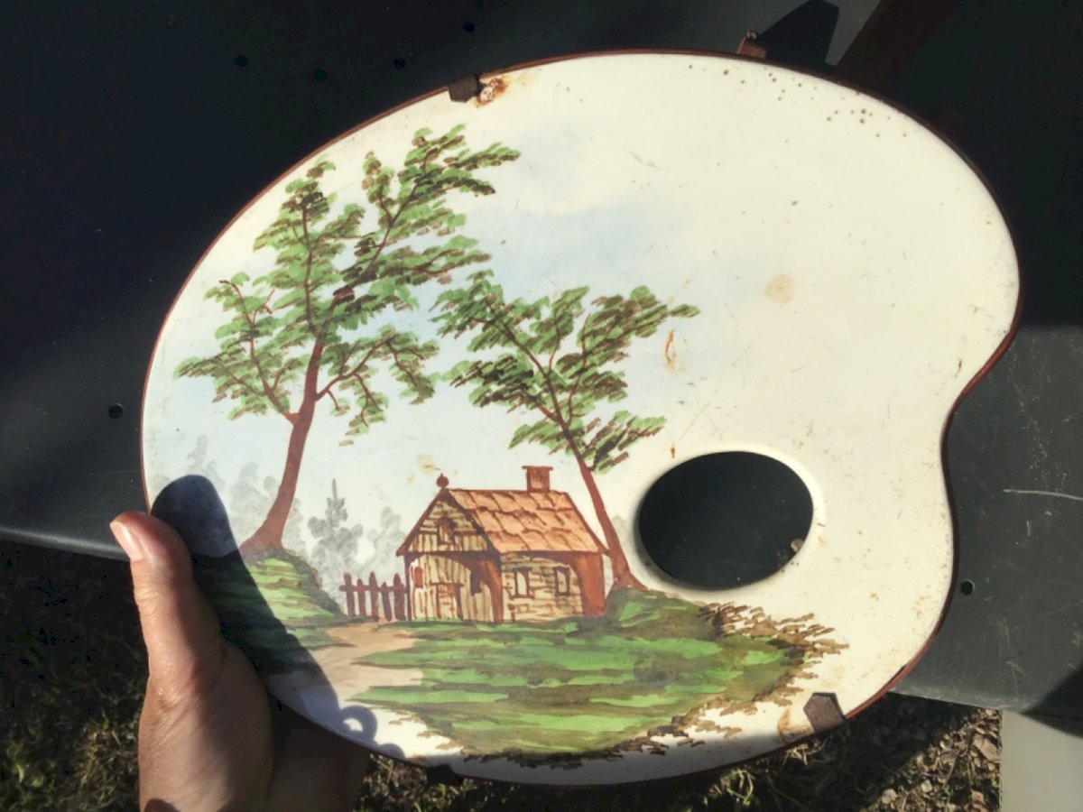 Beautiful painted palette scene CREIL and Montereau palette countryside scene.