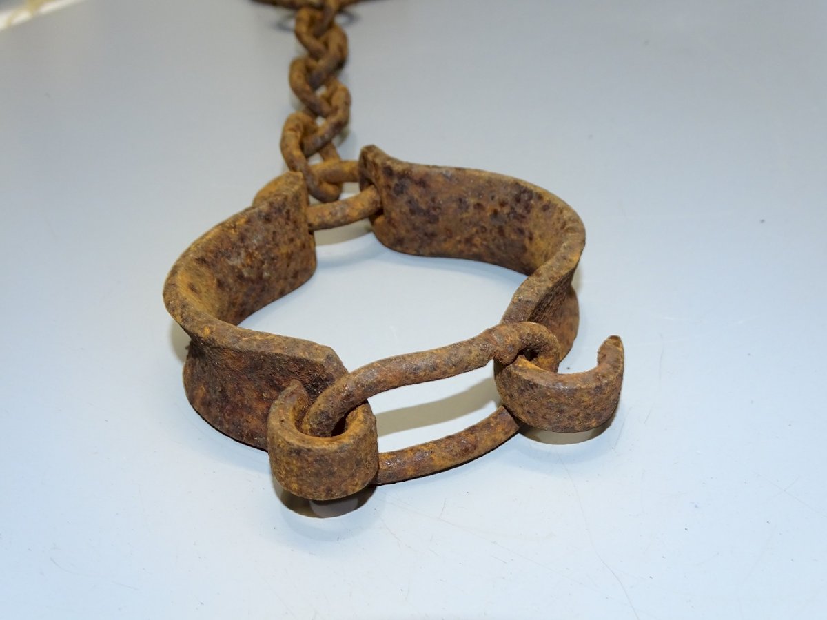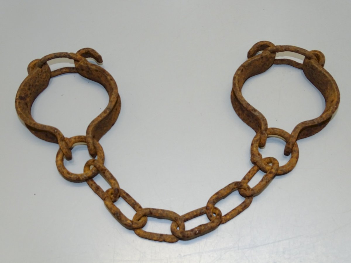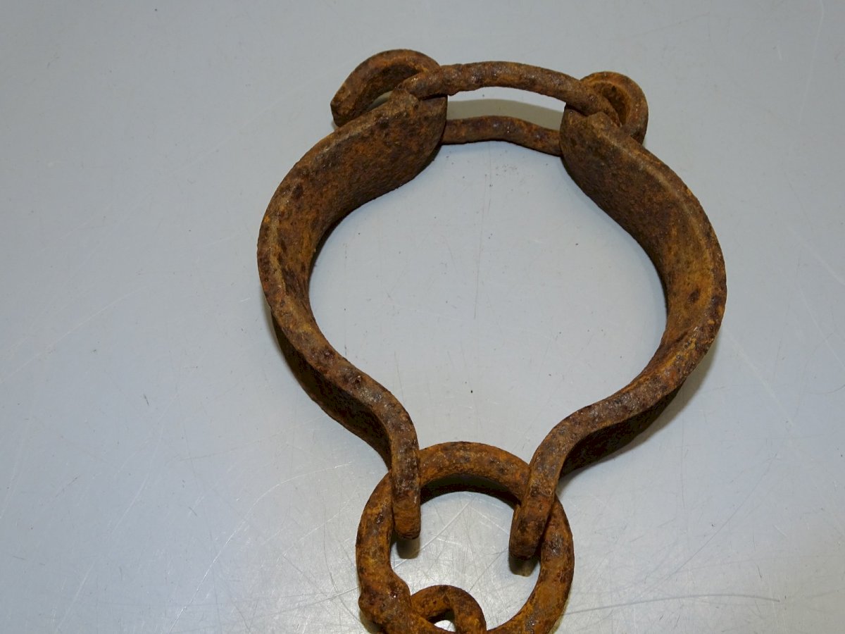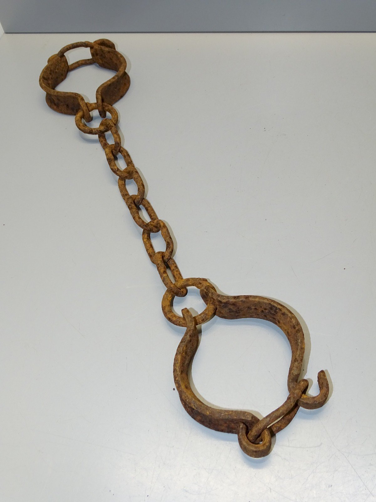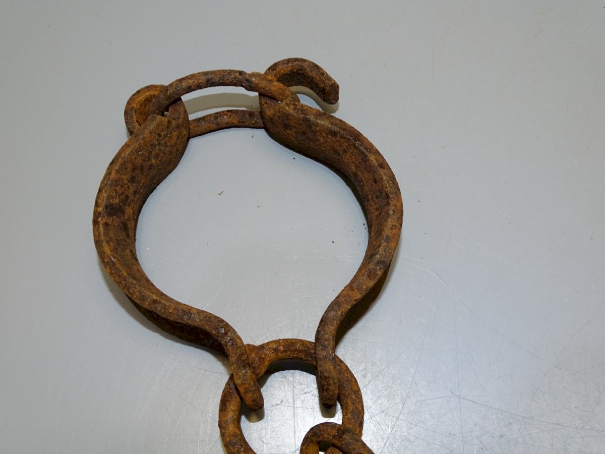 Beautiful pair of XIXth century iron shackles with superficial rust (see photos) - found condition, attic finds, in good used condition, to be cleaned - Ref. 42141025/77 - Length 45.5 cm - Weight 0.633 kg - SHIPPING via Mondial Relay or Colissimo available on request - GUARANTEED very protective PACKAGING - PLEASE LOOK AT ALL PHOTOS as THEY ARE AN INTEGRAL PART OF THE DESCRIPTION and ALLOW YOU TO SEE THE ITEM BEST - Material: Wrought iron