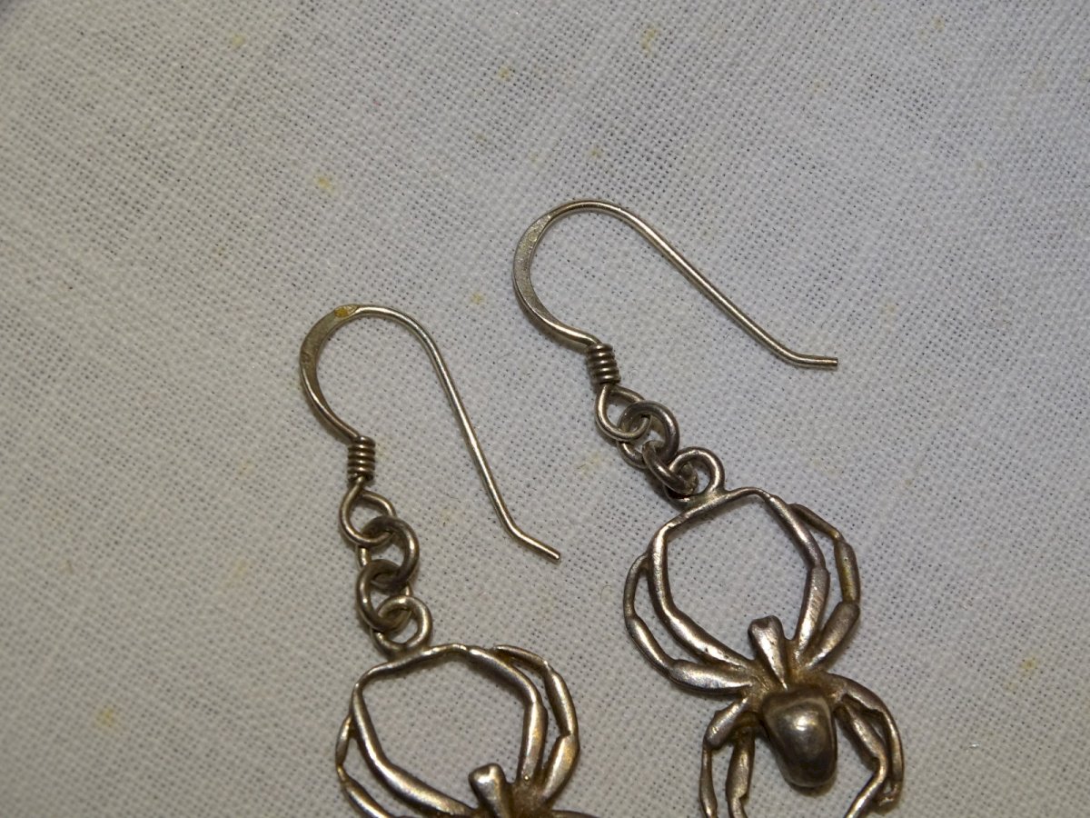 Beautiful pair of 925 silver spider-shaped earrings - with a hallmark to decipher - in good used condition (see photos) - Ref. 1V260319/13 - Total height 4.5 cm - Spider height 2.5 cm - Weight 3.83 g - To contact me, my email address: SHIPPING POSSIBLE VIA MONDIAL RELAY or COLISSIMO upon request VERY GOOD PACKAGING GUARANTEED PLEASE LOOK AT ALL THE PHOTOS as THEY ARE AN INTEGRAL PART of the DESCRIPTION and ALLOW YOU TO SEE the ITEM AT ITS BEST with ITS POSSIBLE SMALL DEFECTS - Condition: Used: Item that has been worn. ...Used: Item that has been worn. any possible imperfections.