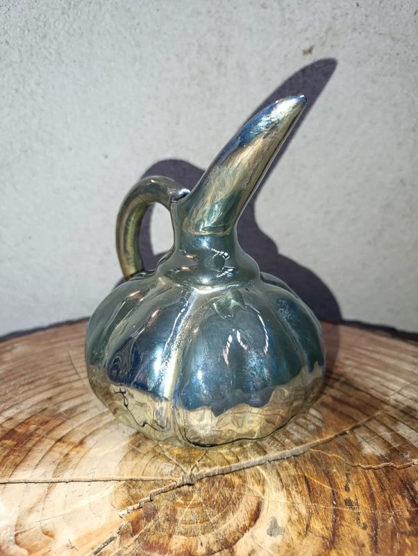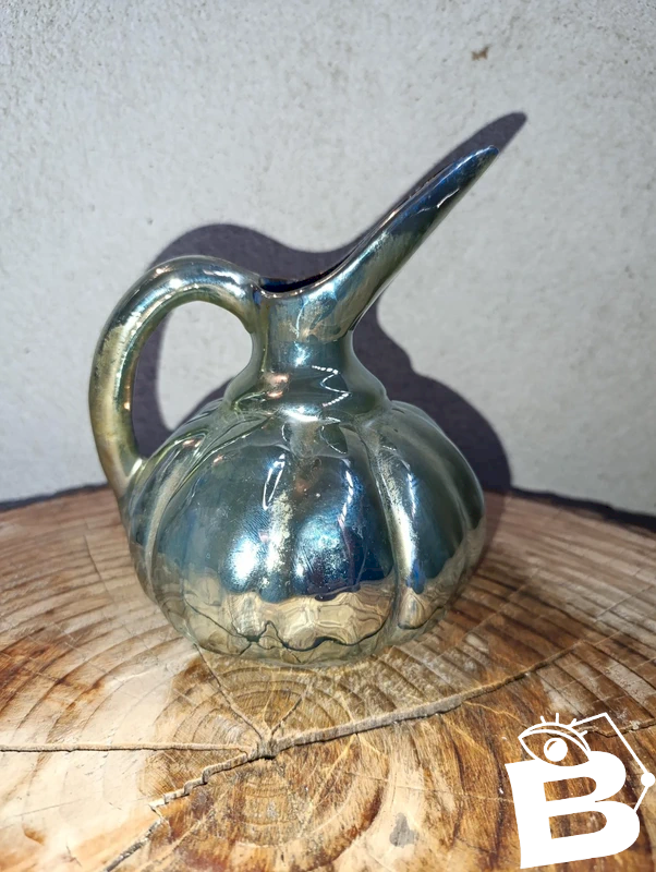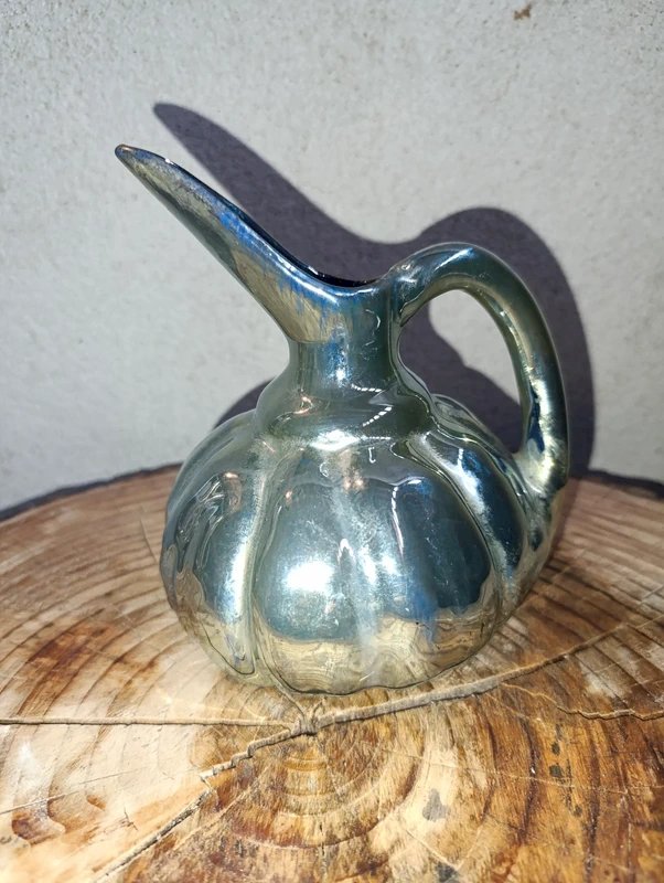 beautiful pouring pitcher from Rambervillers in good condition, lovely iridescent color, height 16cm
