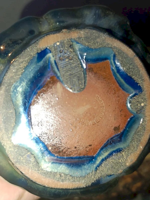Beautiful slightly iridescent stoneware pitcher signed Rambervilliers in good condition