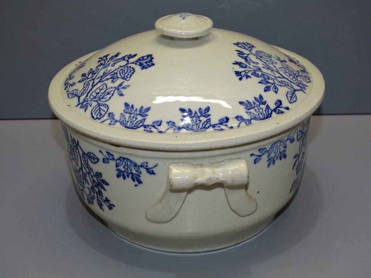 Beautiful soup tureen, steel earth, Saint Uze - unmarked - pretty blue floral decoration - marked 5 in relief at the bottom (see photos) - finder's juice - attic find - Ref. 1V250703/247 Maximum height 16 cm - Edge height 10 cm - Diameter 19.6 cm - Length 22.9 cm - Weight 1.923 kg - SHIPPING POSSIBLE VIA MONDIAL RELAY or COLISSIMO upon request, VERY GOOD PACKAGING GUARANTEED. PLEASE CHECK ALL PHOTOS CAREFULLY as THEY ARE AN INTEGRAL PART of the DESCRIPTION and ALLOW YOU TO SEE the ITEM IN THE BEST LIGHT with ITS POTENTIAL MINOR DEFECTS.
