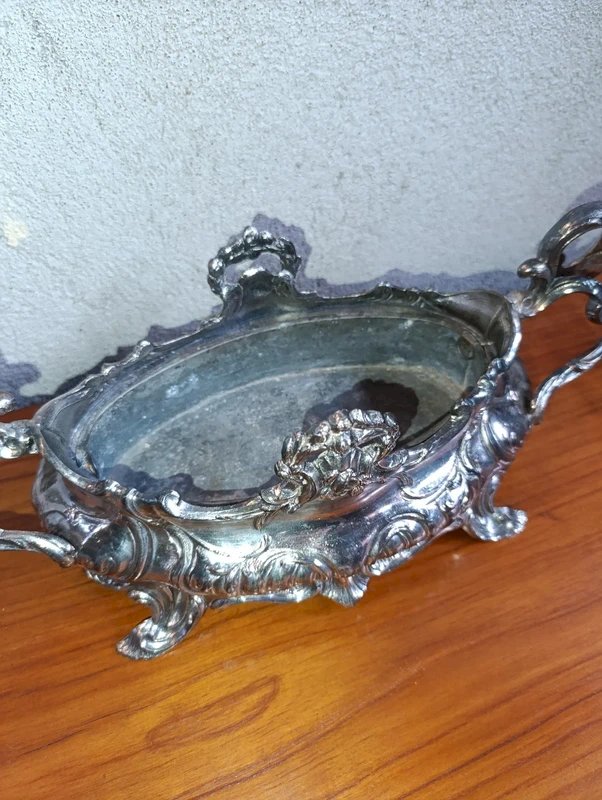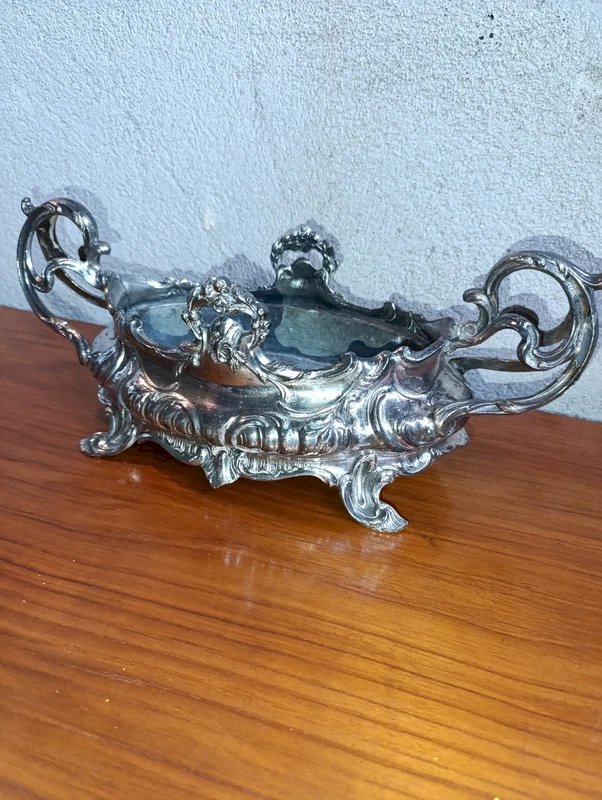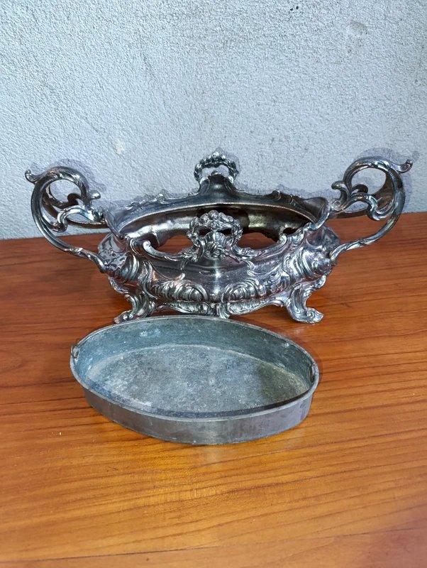 beautiful table planter with its base probably 19th century in good condition late 19th early 20th registered model very decorative metal patinas and normal wear due to time which adds to its charm dimensions 36cm width 16cm height 14cm...