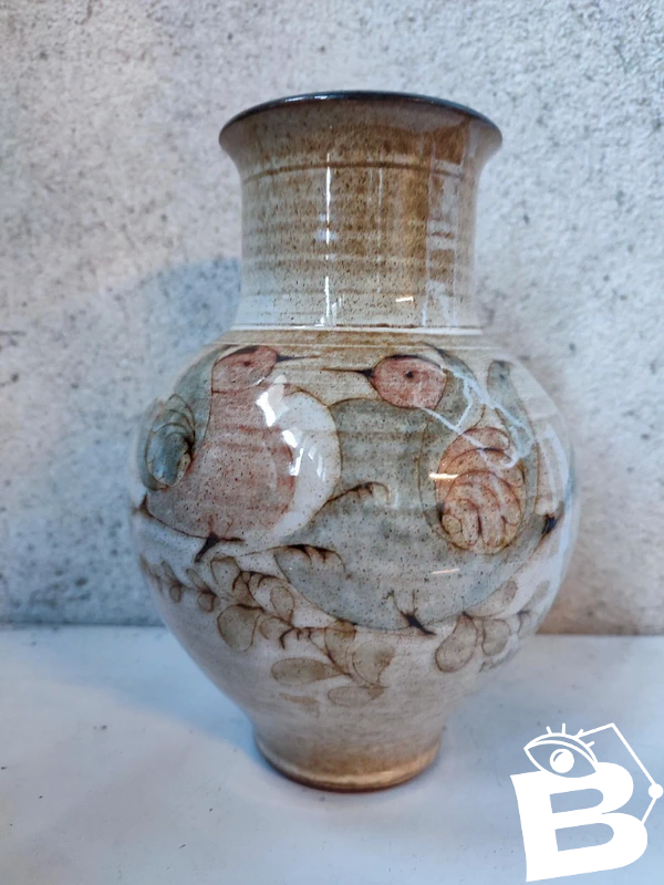 beautiful vase with a bird motif in the typical style of Michel Bailly's productions in good condition