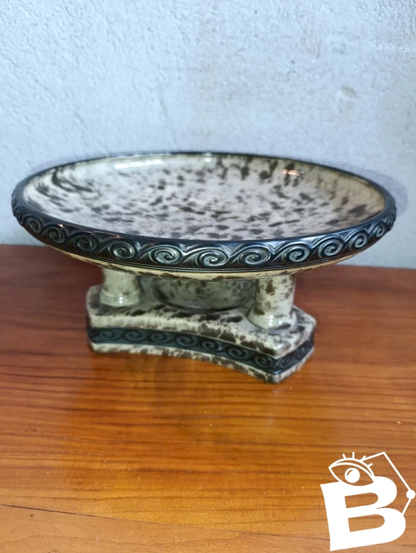 beautiful bowl/ ceramic center piece vintage signed Krausc in good condition probably of North European origin, Denmark? diameter 32cm and height 15cm note two chips under the base, but they are not visible when the bowl is placed (see photos)...