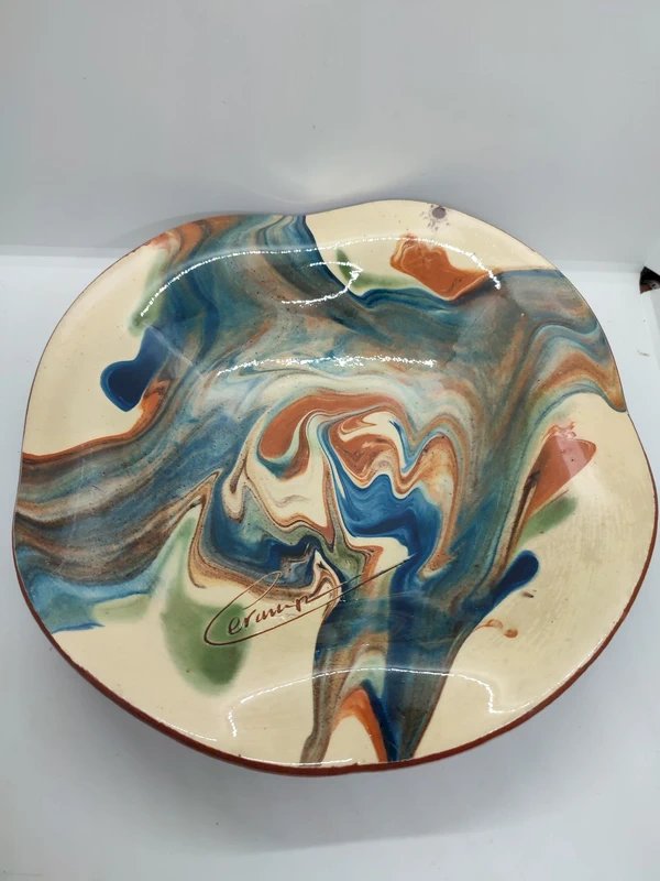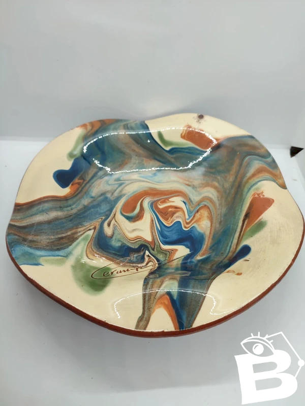 Beautiful wavy-shaped dish signed CERAMP in good condition, just one or two small chips on the edge (very slight) diameter approximately 26.5cm and height 6cm, uncommon model, well crafted.