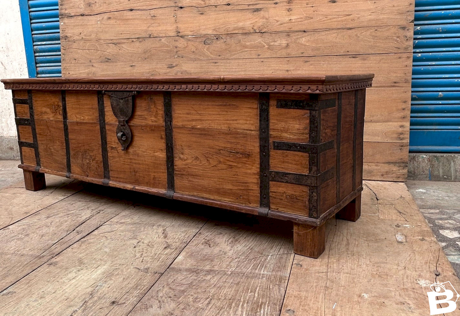 bench - Burmese teak chest with original fittings