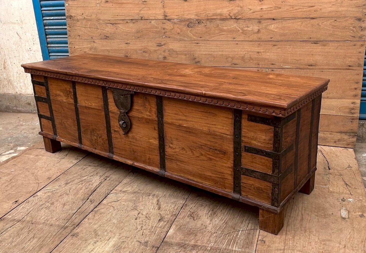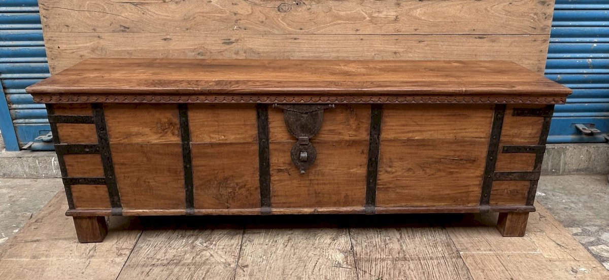 bench - Burmese teak chest with original fittings Ethnic Wood