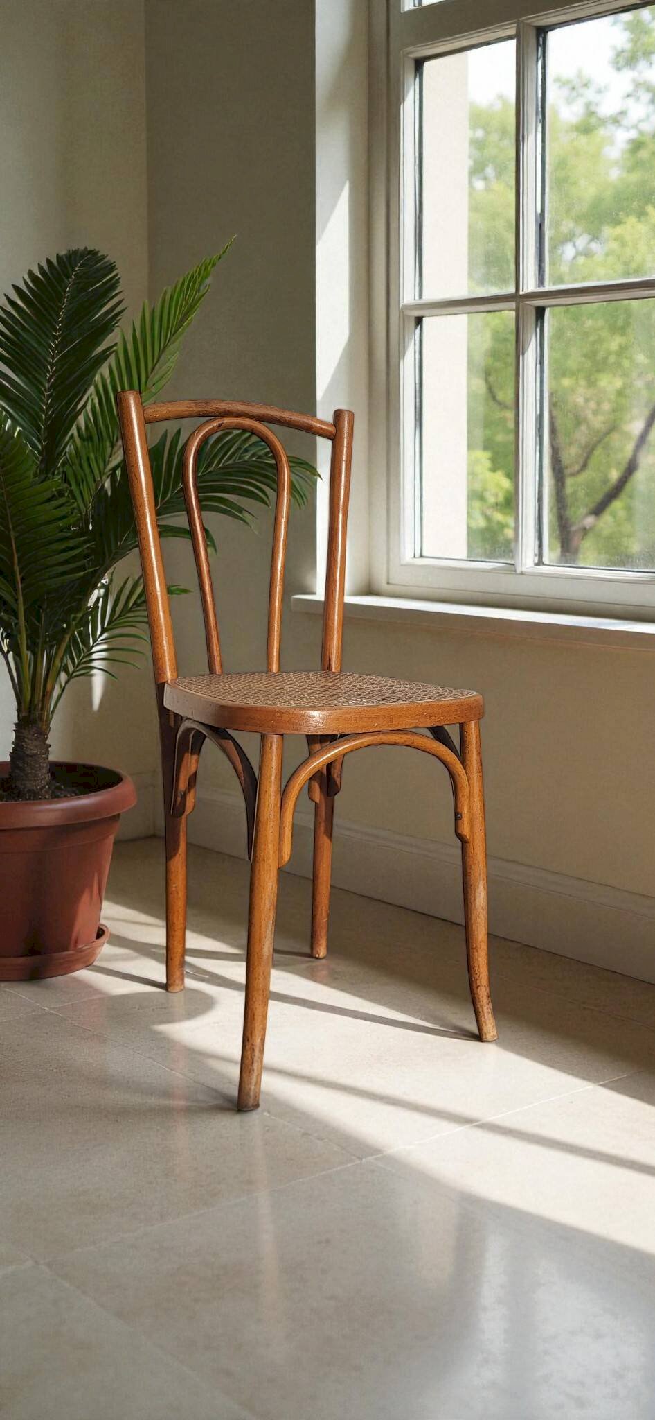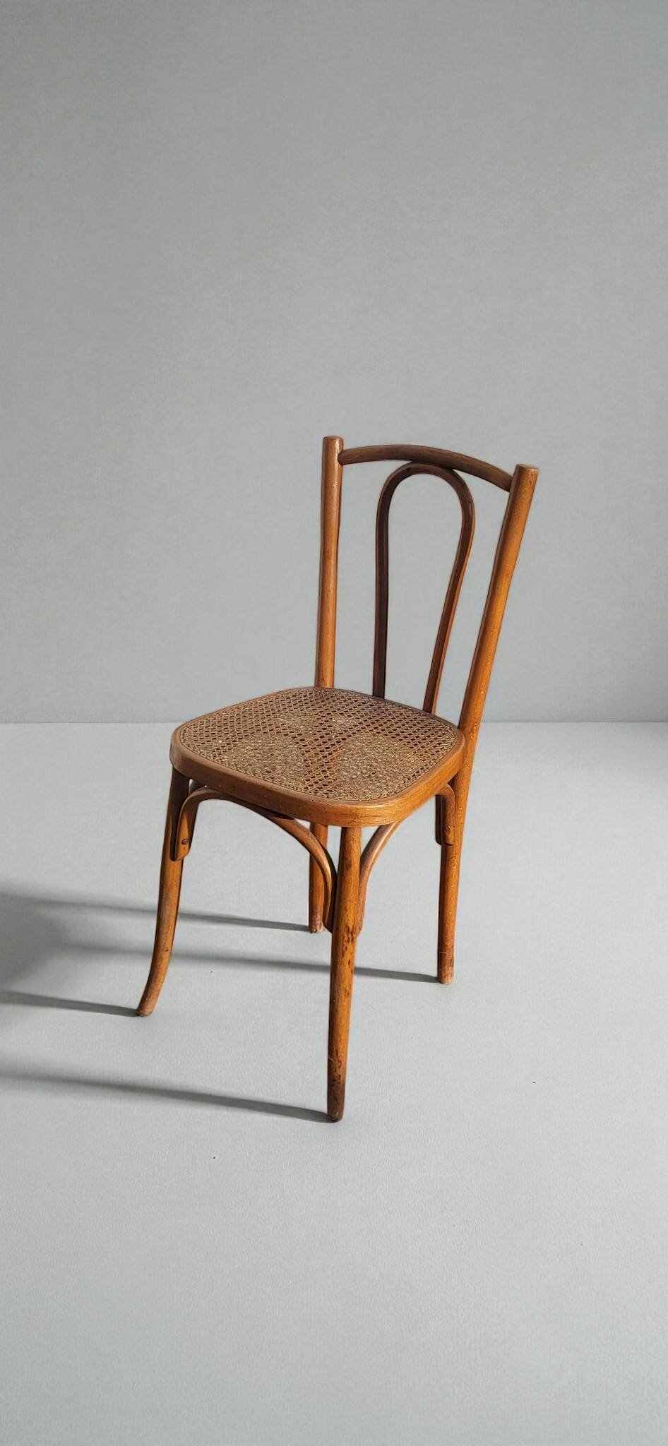 Bistro chair in bent wood attributed to Thonet. Height 86 cm. Seat height 47.5 cm. Seat width 38 cm. Seat depth 39 cm. In good condition with minimal signs of use and age.