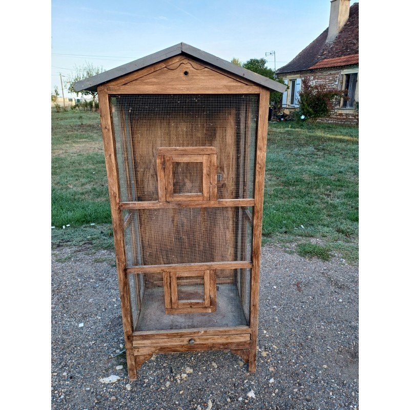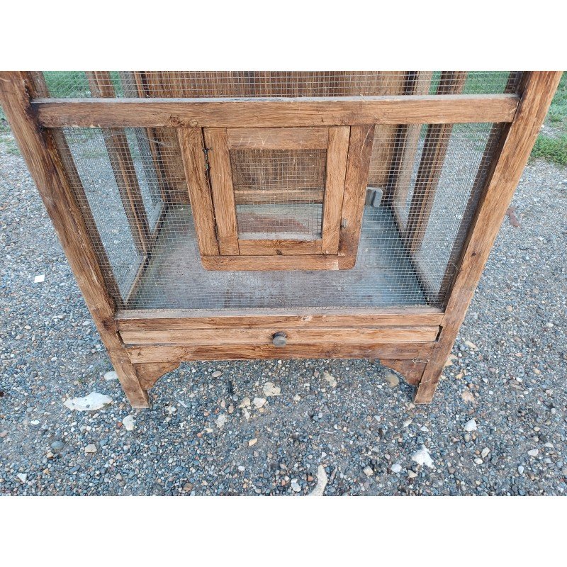 Bird Cage Wooden and Wire Mesh Aviary, 2 Doors, 1 Drawer, Height 157 cm, Length and Width: 79 cm by 55 cm, very good condition, foldable