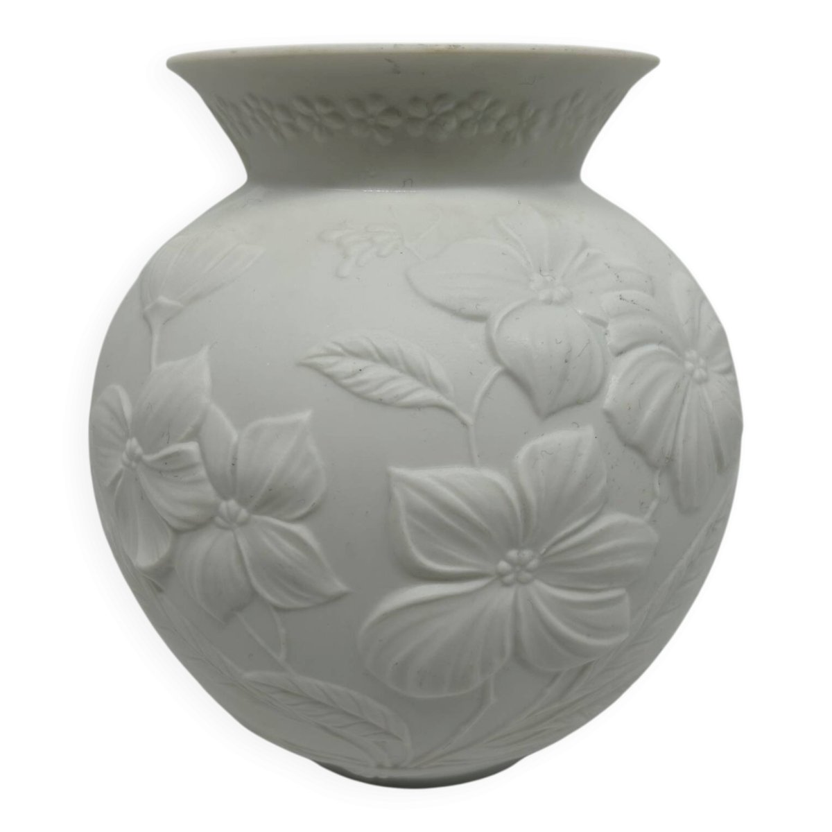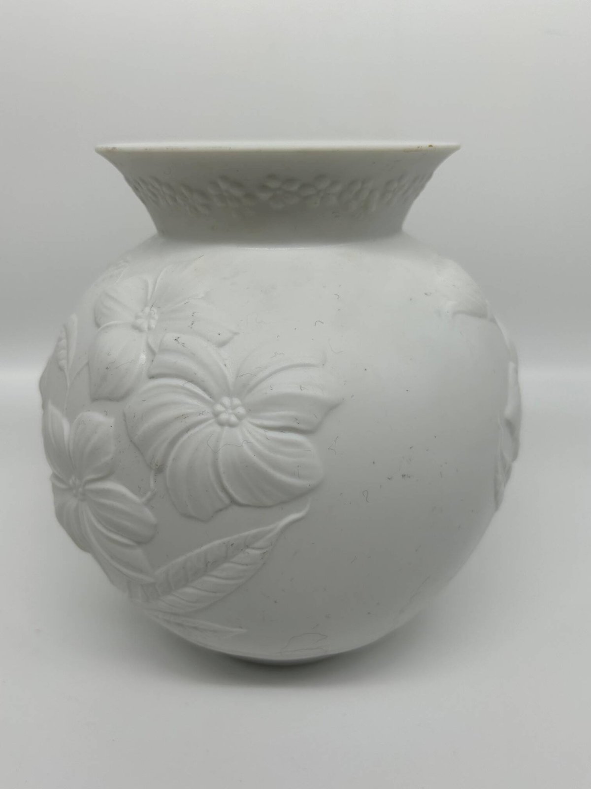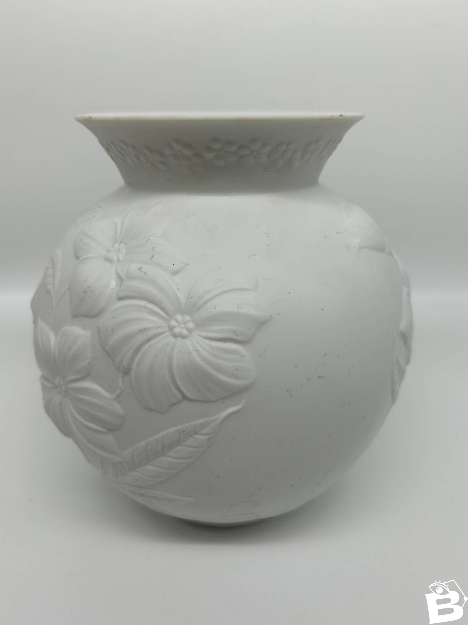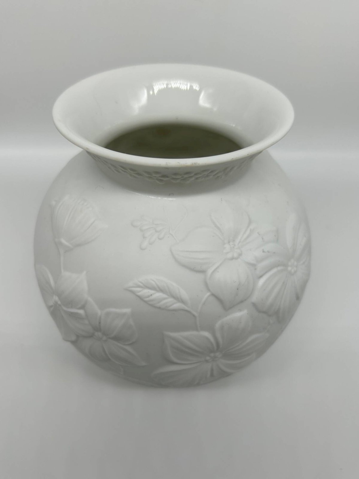 Matte white porcelain vase made by AK Kaiser, 1970s. L: 17 W: 17 H: 18