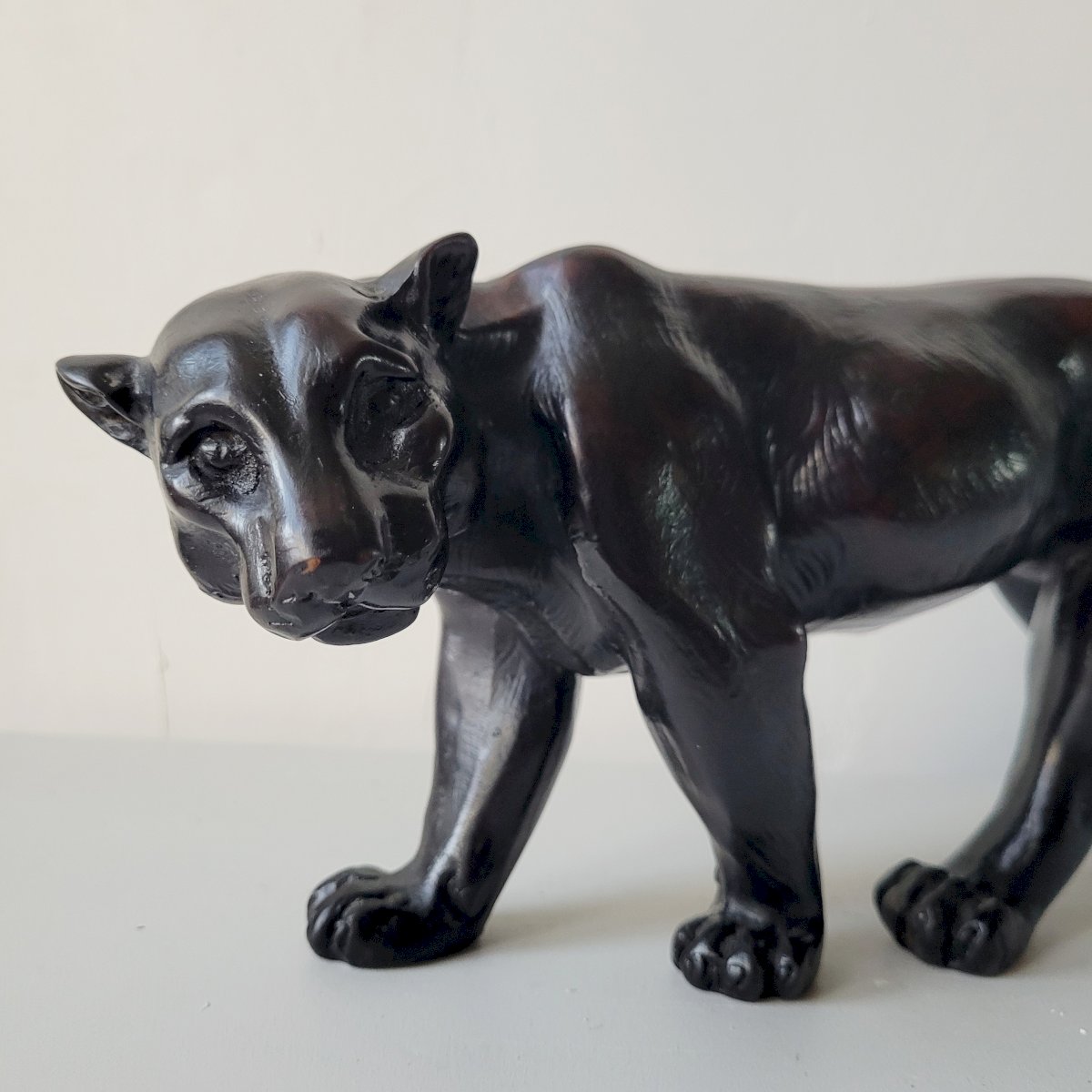 High-quality decorative figure from the 70s, made of reconstituted marble (marble powder with Cronolita) and finely polished. Patinated with acrylics and natural earths that give the impression of a bronze sculpture.
