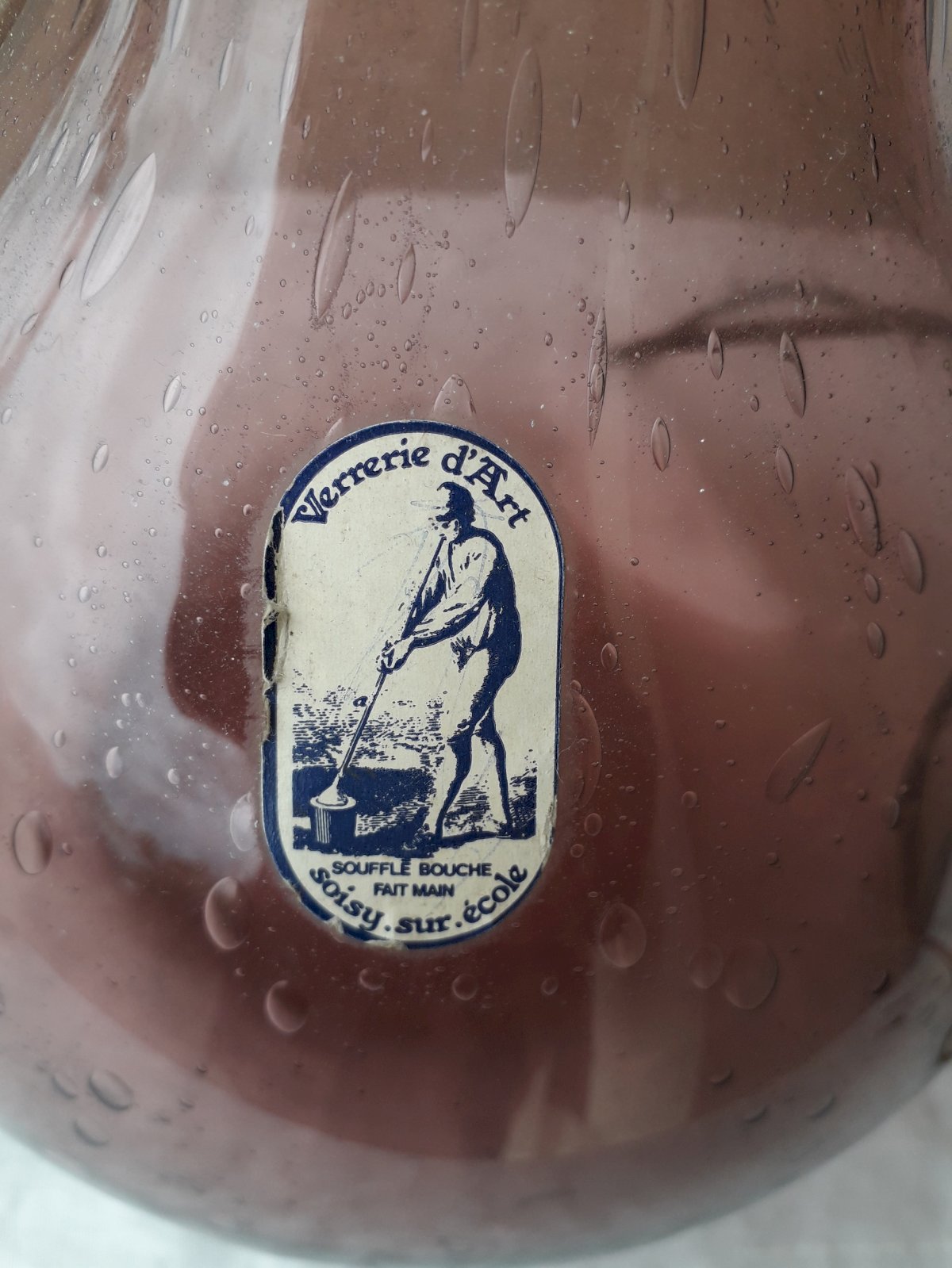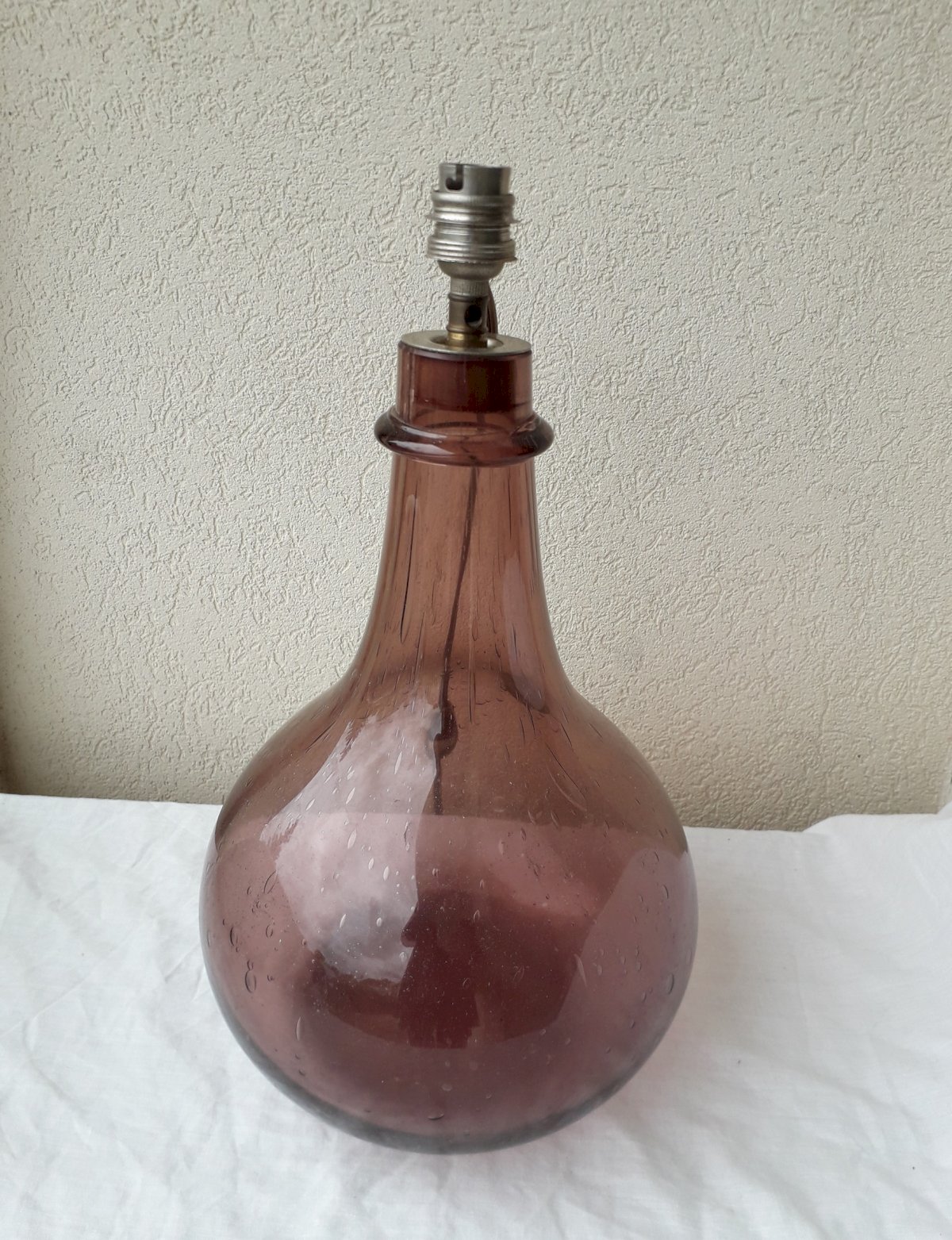 Bubble glass lamp base, handmade in Soisy sur Ecole, in purple color. Very good overall condition, no breakage or chipping, just an original irregularity in the material, socket metal rusted (see photos). Dimensions: height 36 cm, maximum diameter 22 cm. Weight 2.3 kg. Feel free to contact me for any additional information and/or to make your offers. See my other items for sale.