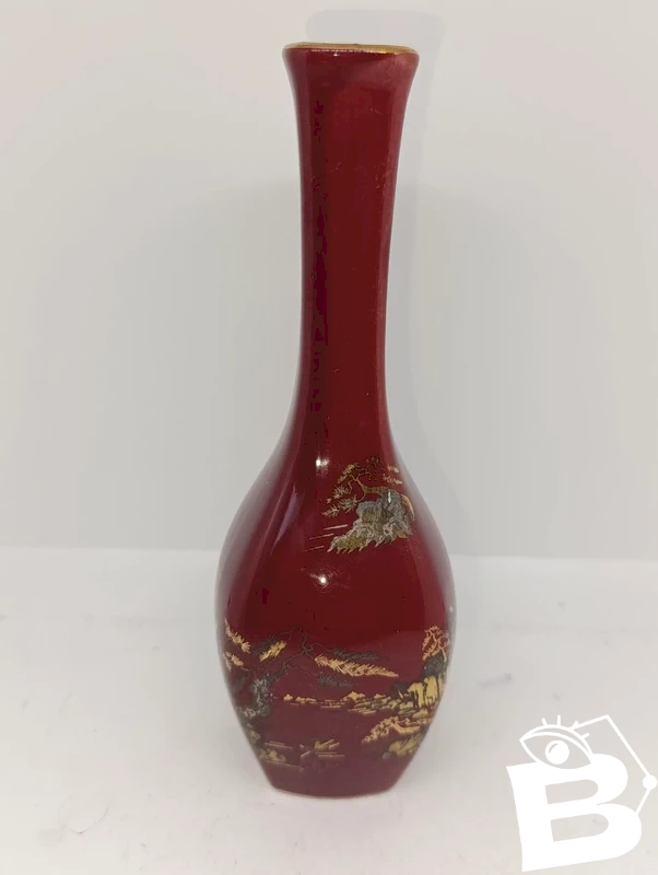 Asian origin Bordeaux bud vase with floral decoration in good condition, just a few minor signs of wear. Height 18cm.