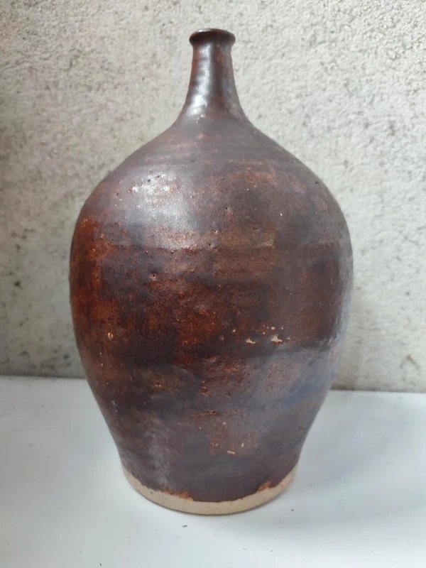 bottle vase in stoneware signed Alain Rech in Biot? in good condition Brown