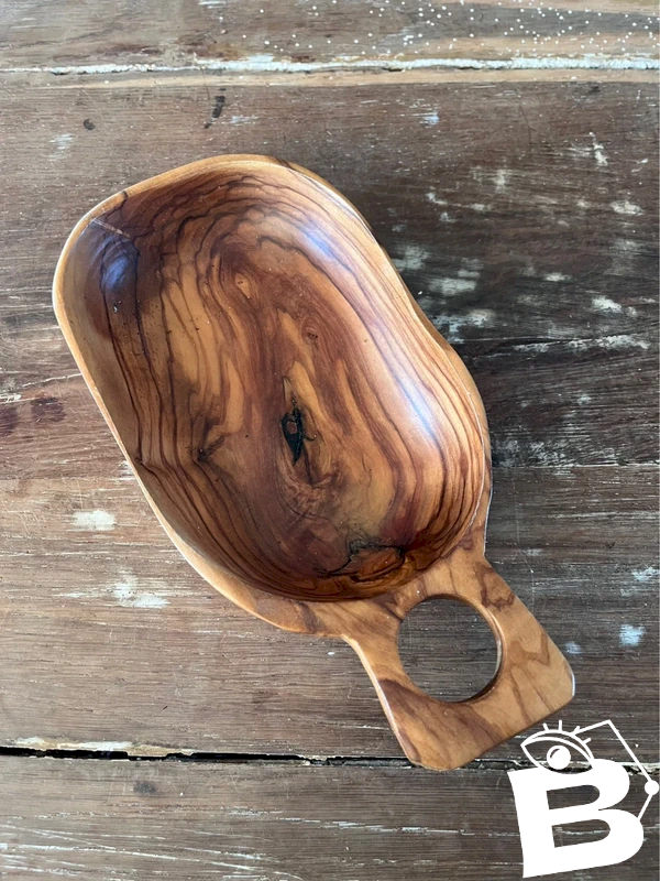 Ashtray or pocket tray signed Jean-Paul Bain Vallauris in olive wood.
