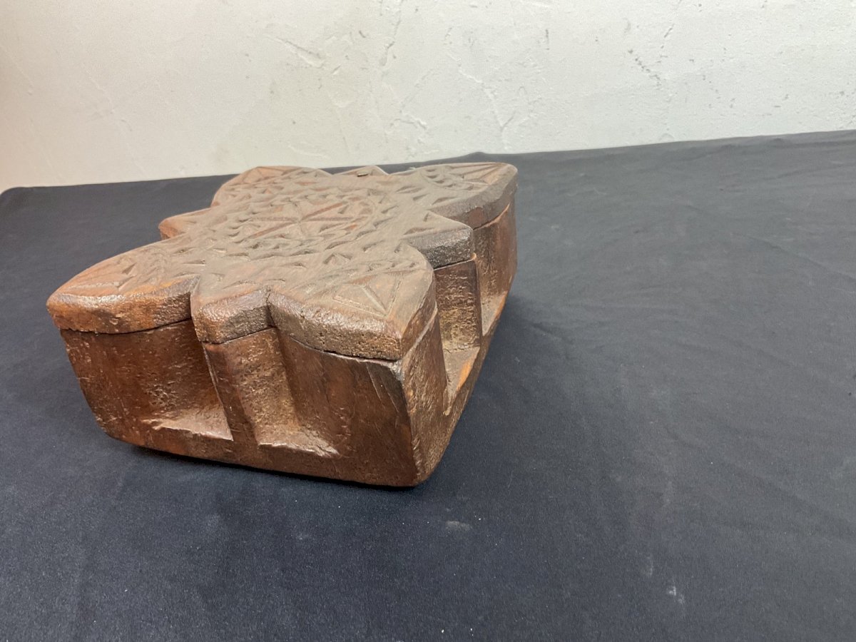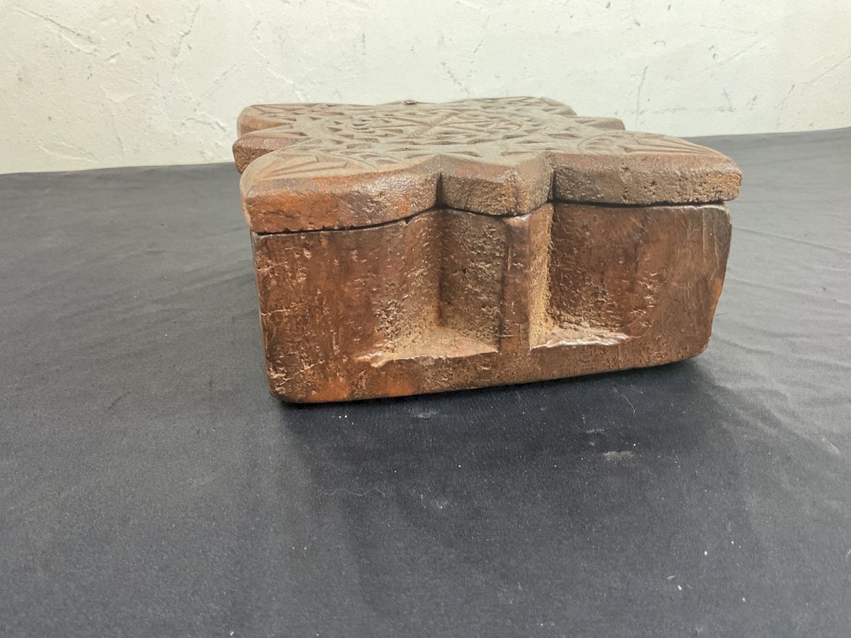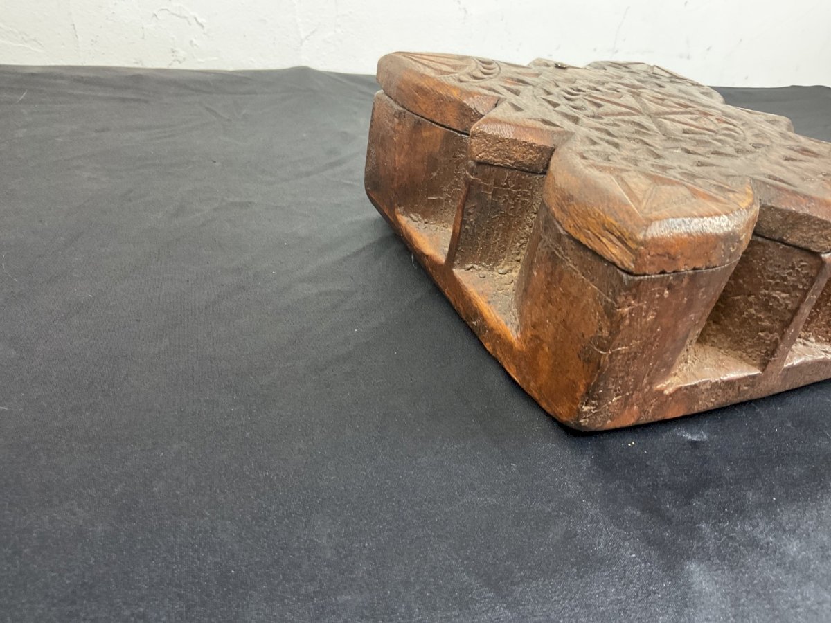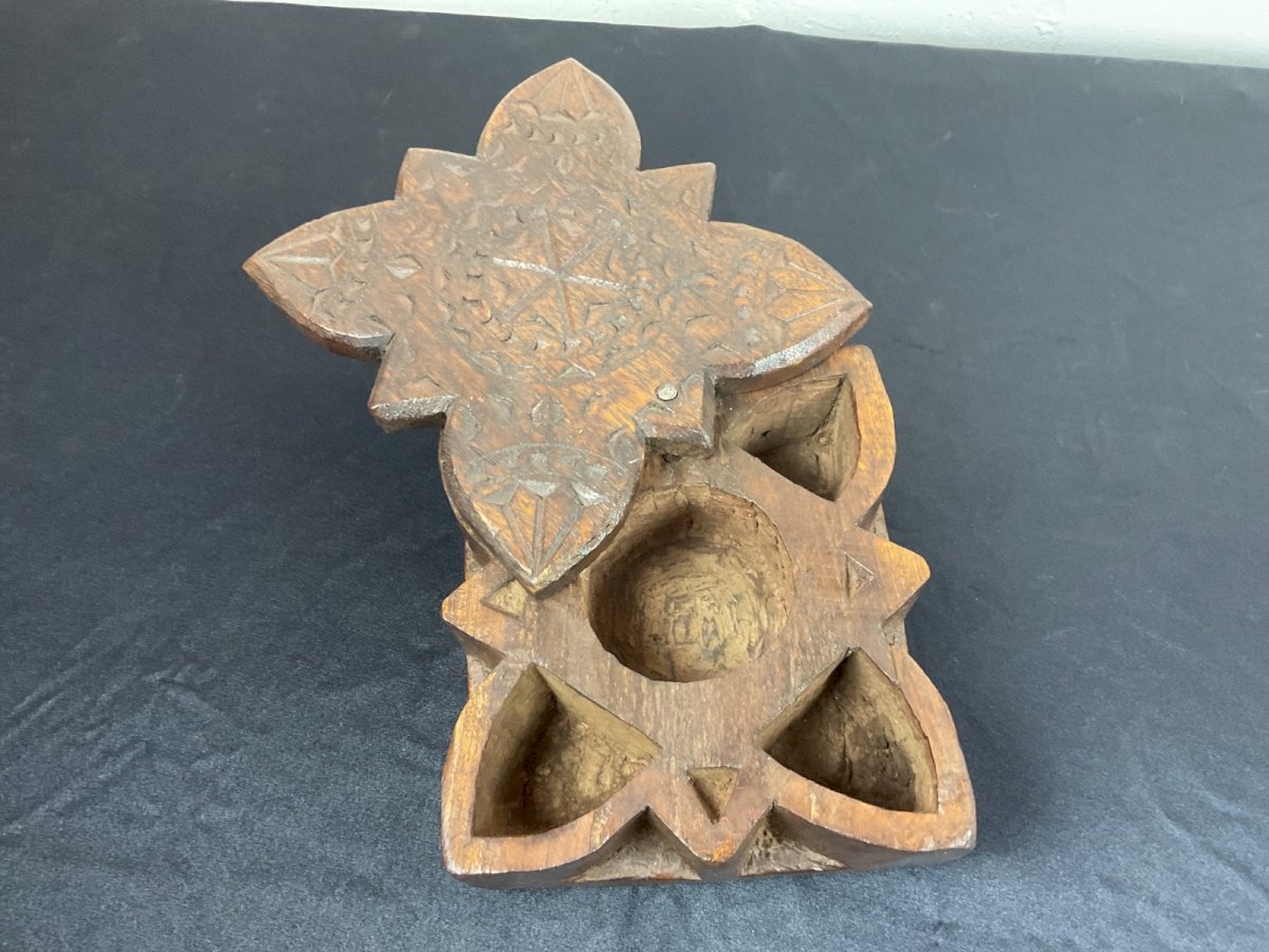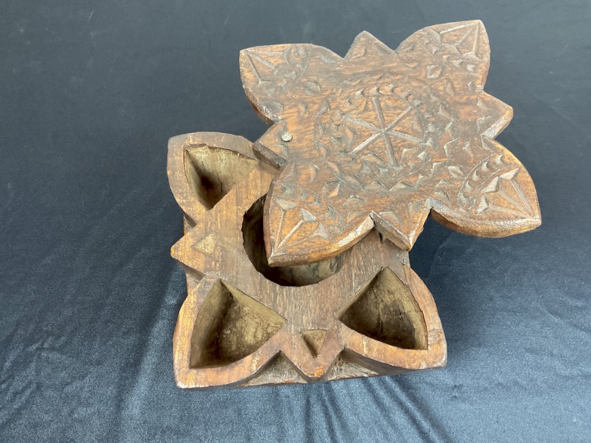 Tikka and spice box India 19th Century Authenticity: Original Type: tikka Origin: India Period: early 20th Height: 7 cm Material: Wood Length: 15 cm Width: 16 cm