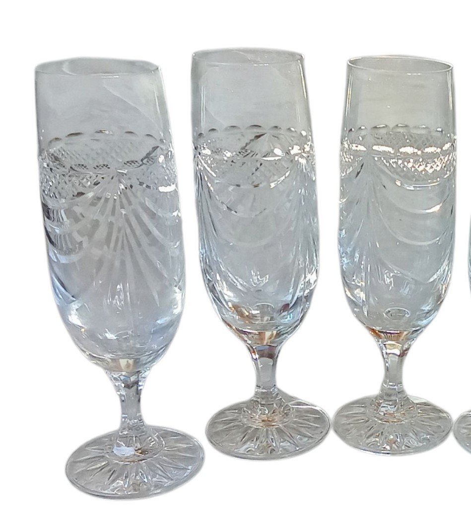 Antique box with 6 beautiful crystal flute glasses from Cristallerie Lorraine, Grandes Ducs model Chenonceaux, hand-cut. Quality pieces. Very chic. Perfect condition. In its original box. Height 17 cm, drinking diameter 4.6 cm.