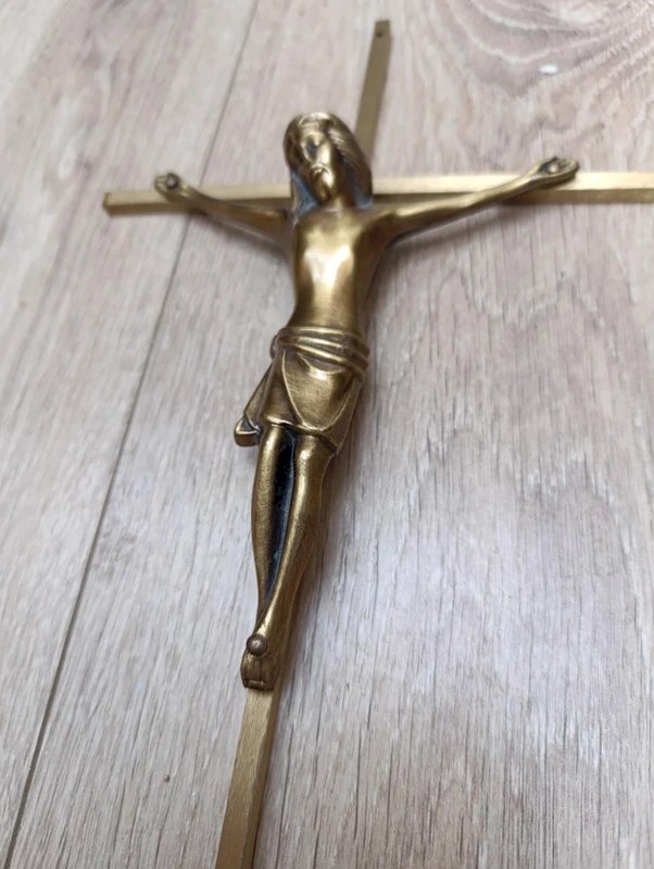 brass cross with gold-colored metal Jesus in good condition