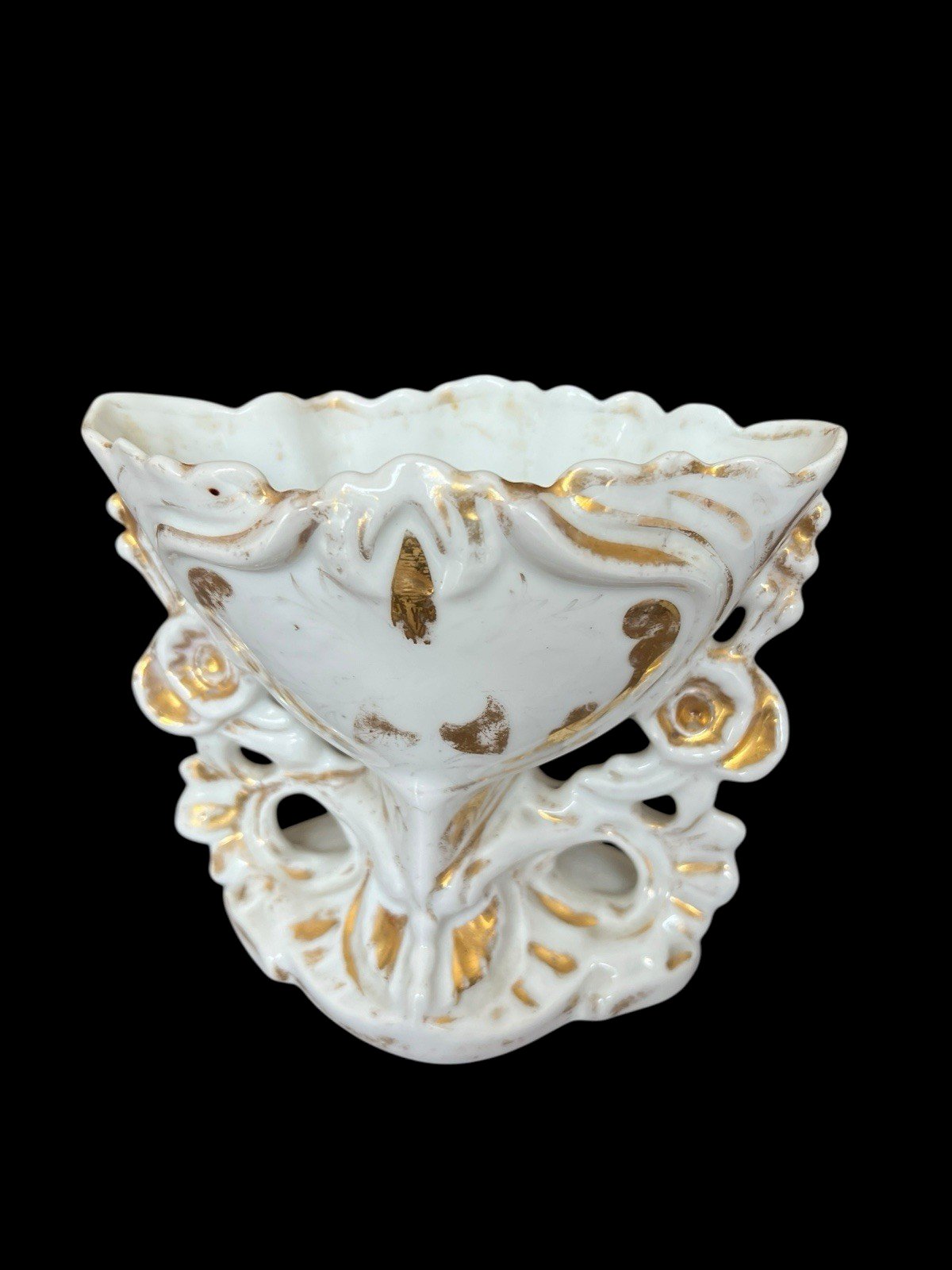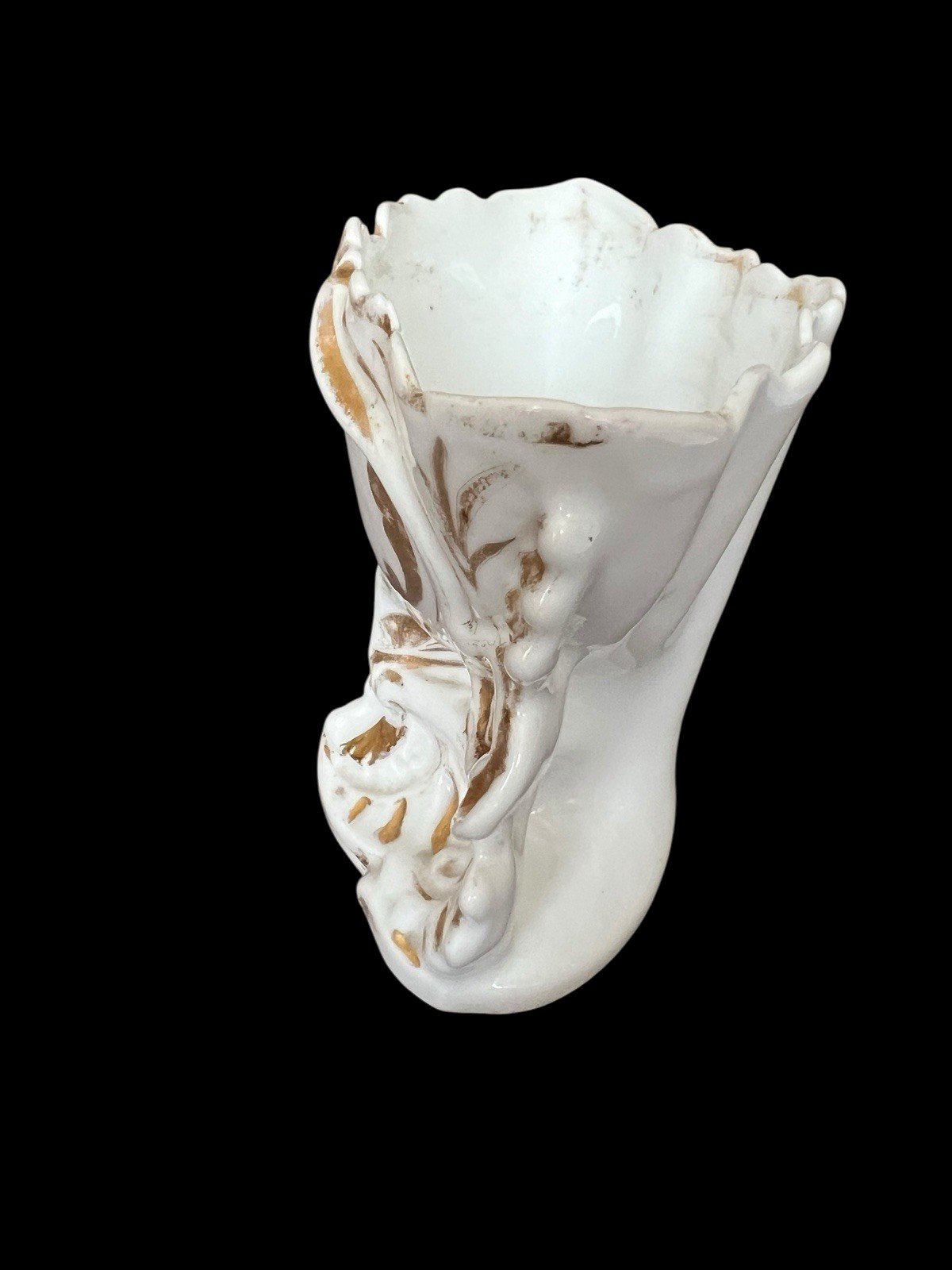 19th century bride vase porcelain Old Paris decoration. Visible loss of gold in the photo, some signs of wear, a micro chip inside, see the last photo. Otherwise in good general condition, dimensions approximately 15 cm wide by 11.5 cm high. Weight 380 g. Country of manufacture: France.