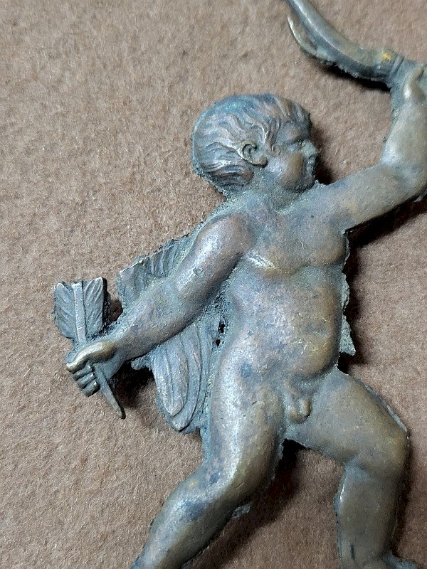 Superb bronze cherub decoration on furniture, it's in very good condition and needs to be fixed only by one hole. It's a very beautiful object measuring 8.5 cm tall and 7.2 cm wide. Type: Showcase object, Decorative. Material: Bronze. Country of origin: France.