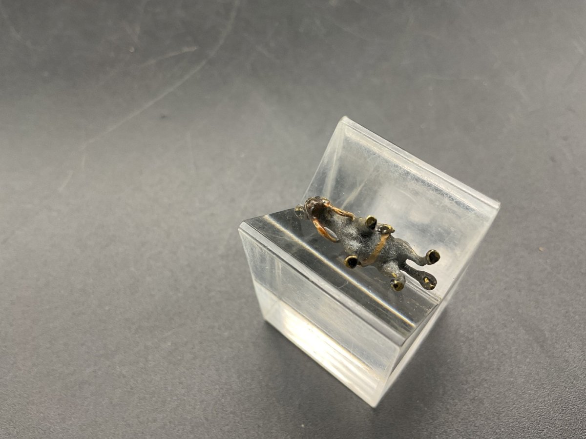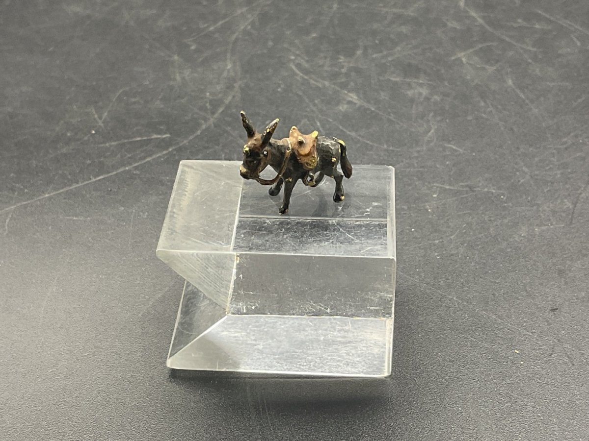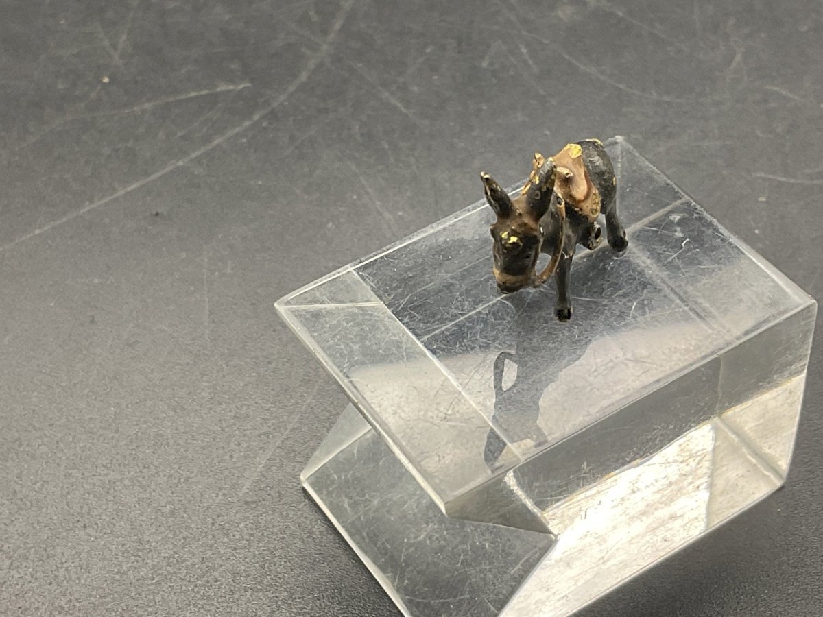 Bronze Donkey from Vienna Austrian Wien cold painted bronze Length x width x height: 19 x 5.3 mm x 16.2 mm Weight: 2.82 g Authenticity: Original Type: Showcase object, Decorative Origin: Austria Subtype: Sculpture Style: 19th century Material: lead