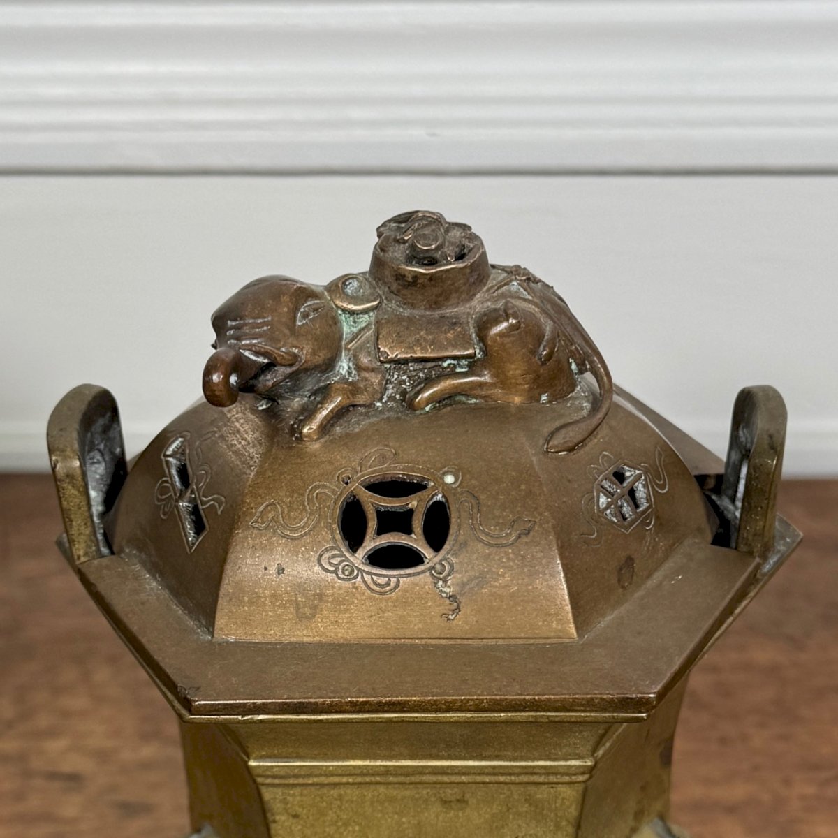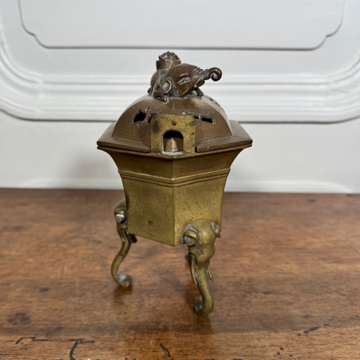 Bronze incense burner China or Indochina late 19th century tripod feet M3947 This incense burner has a beautiful patina. In terms of condition, there are signs of wear due to use. Our photographs allow you to appreciate the quality of the item. Please take a good look at the photos. Feel free to zoom in. The photos are an integral part of the description. Dimensions: Height: 17 cm Width: 11.5 cm Depth: 9.1 cm P: 1680783 I remain at your disposal for any questions. Type: Showcase object, Decorative Origin: Asia Sub-type: Incense burner Country of origin: China Height: 17 cm Material: Bronze Length: cm Width: 11.5 cm