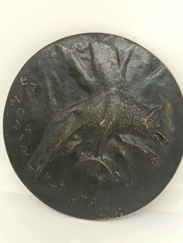 "By Émile Rousseau Circular bronze table medal Diameter 14cm, weight 1kg Mint of Paris, manufacturer Rousseau, Émile, engraver (function author).