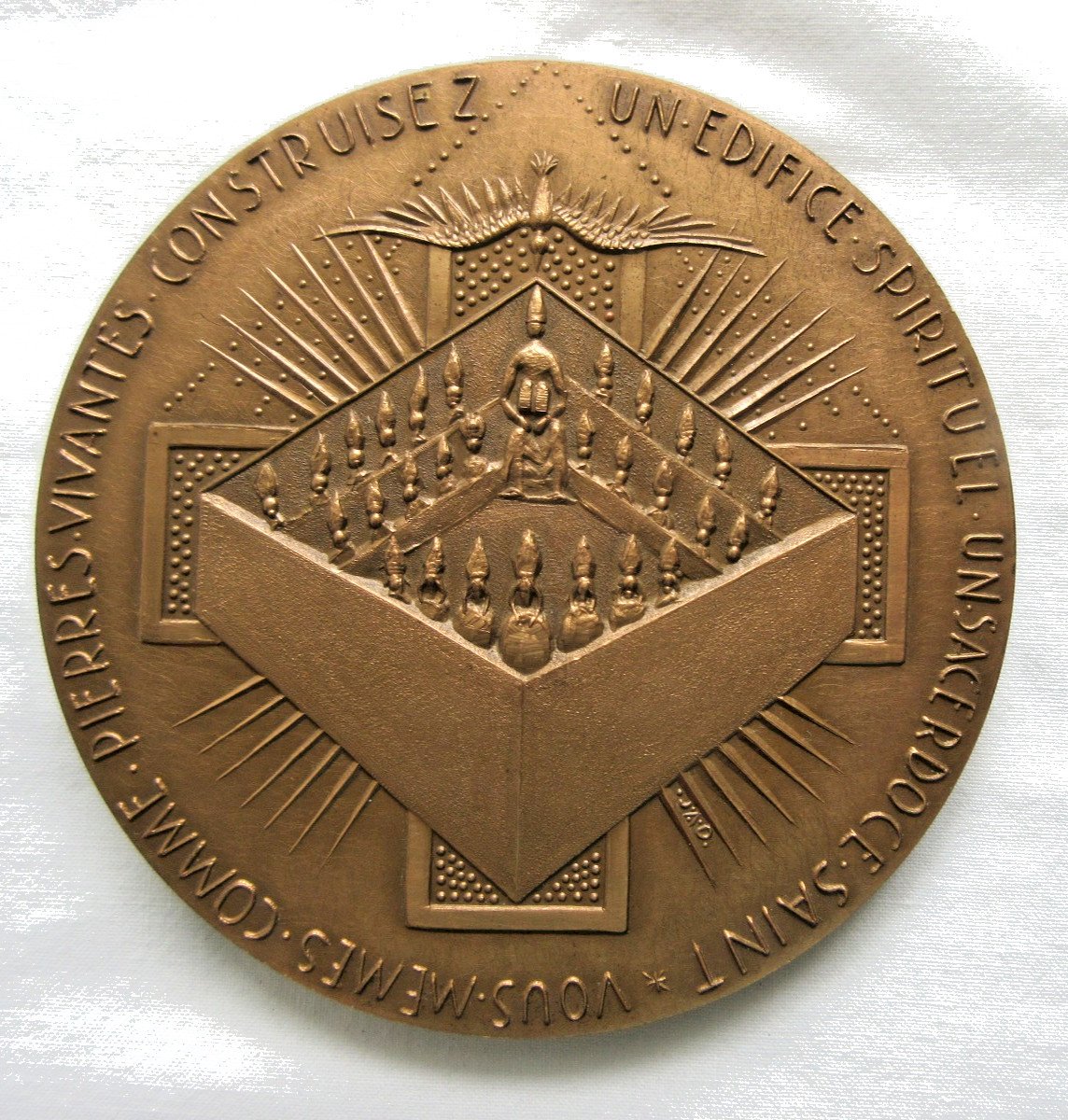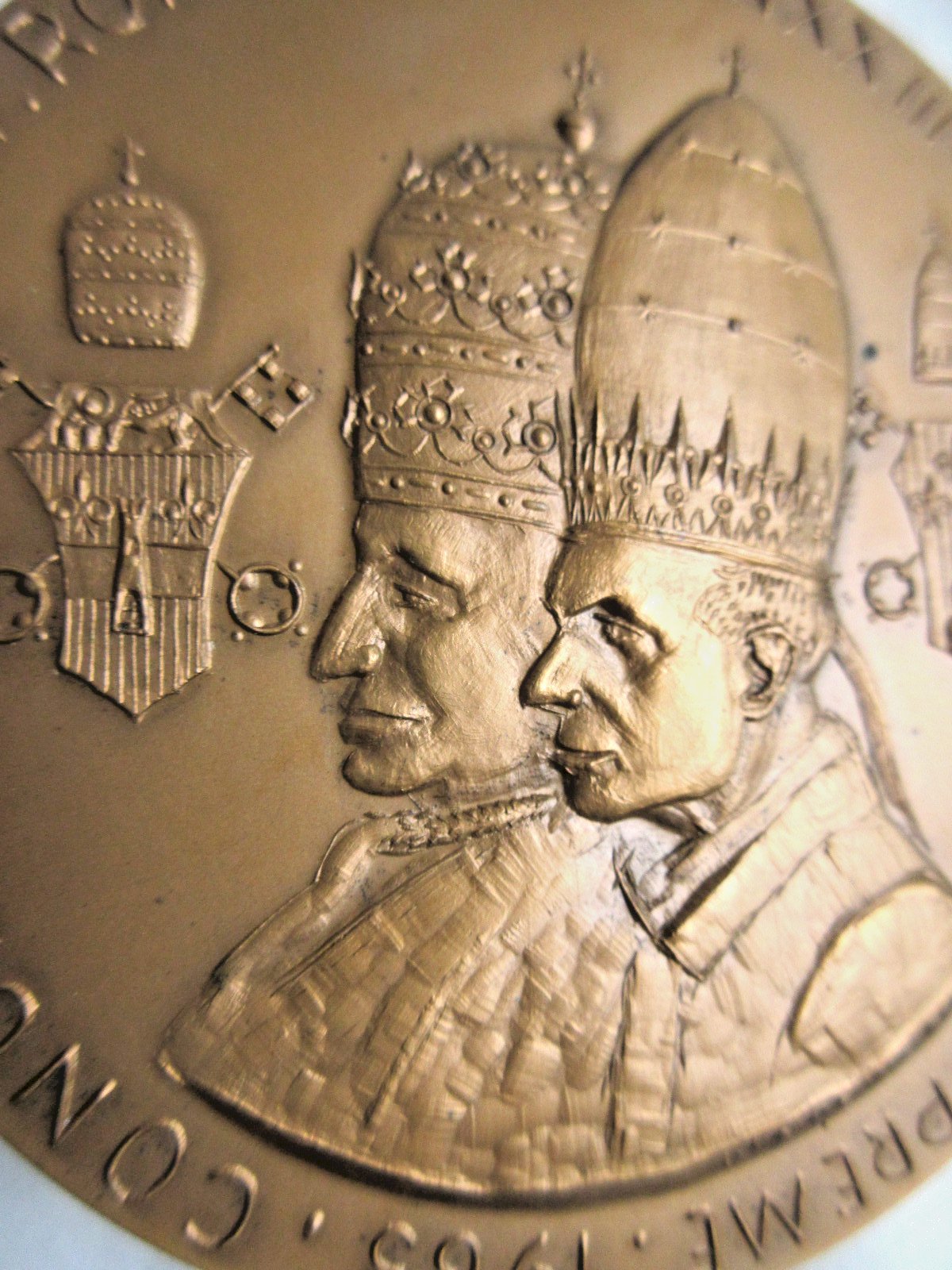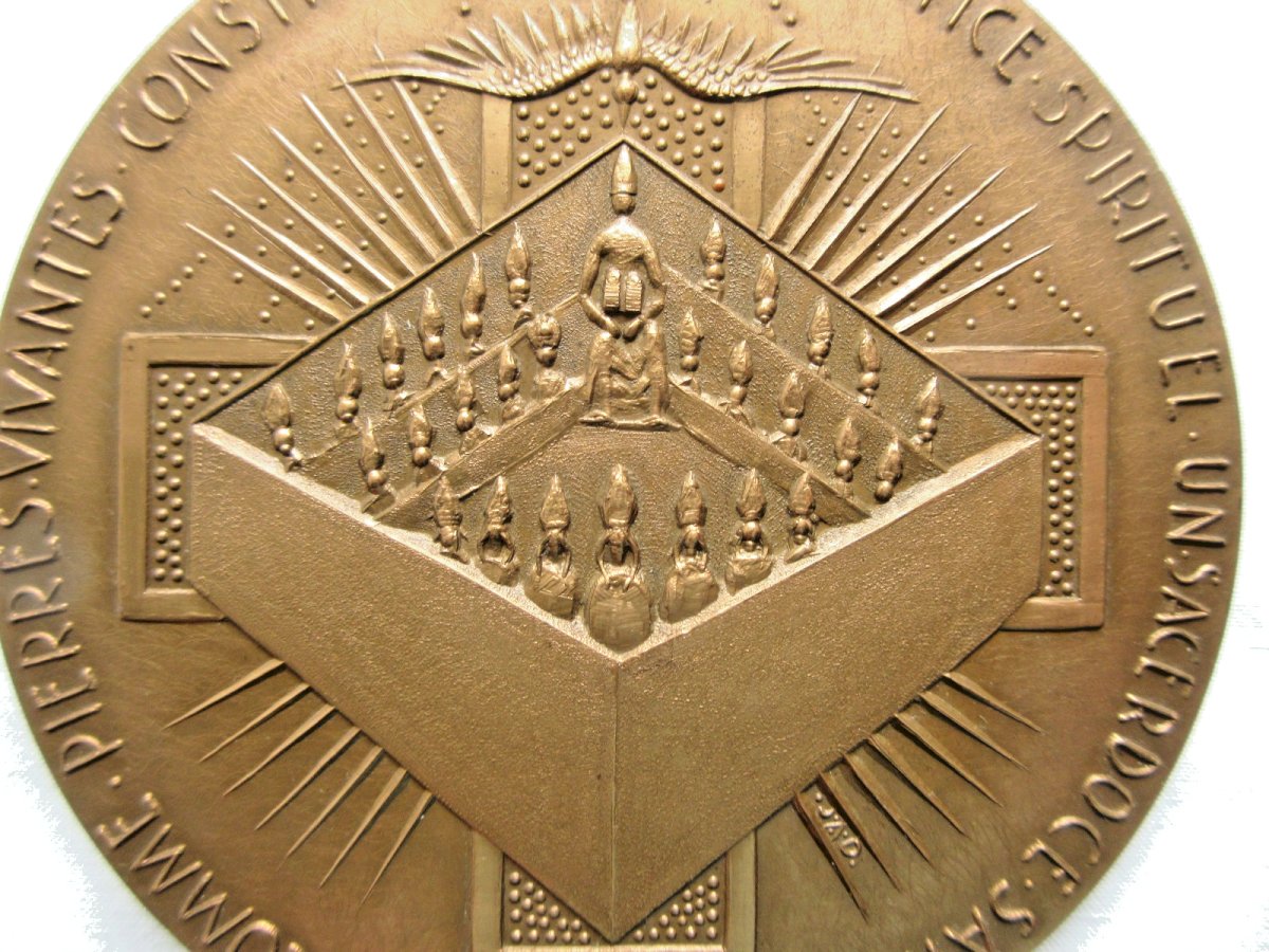 Worldwide sale. Medal: Popes John XXIII and Paul VI. It is a religious bronze medal featuring Popes John XXIII and Paul VI during the Vatican Council in 1965. On the reverse, there is an inscription around the medal. Diameter: 10 cm. Weight: 492 grams. Good condition, without flaws. Beautiful collectible medal. The photos complement the description. Authenticity: Original Type: Showcase item, Decorative Origin: France Subtype: Religious medal Material: Bronze Style: Napoleonic III