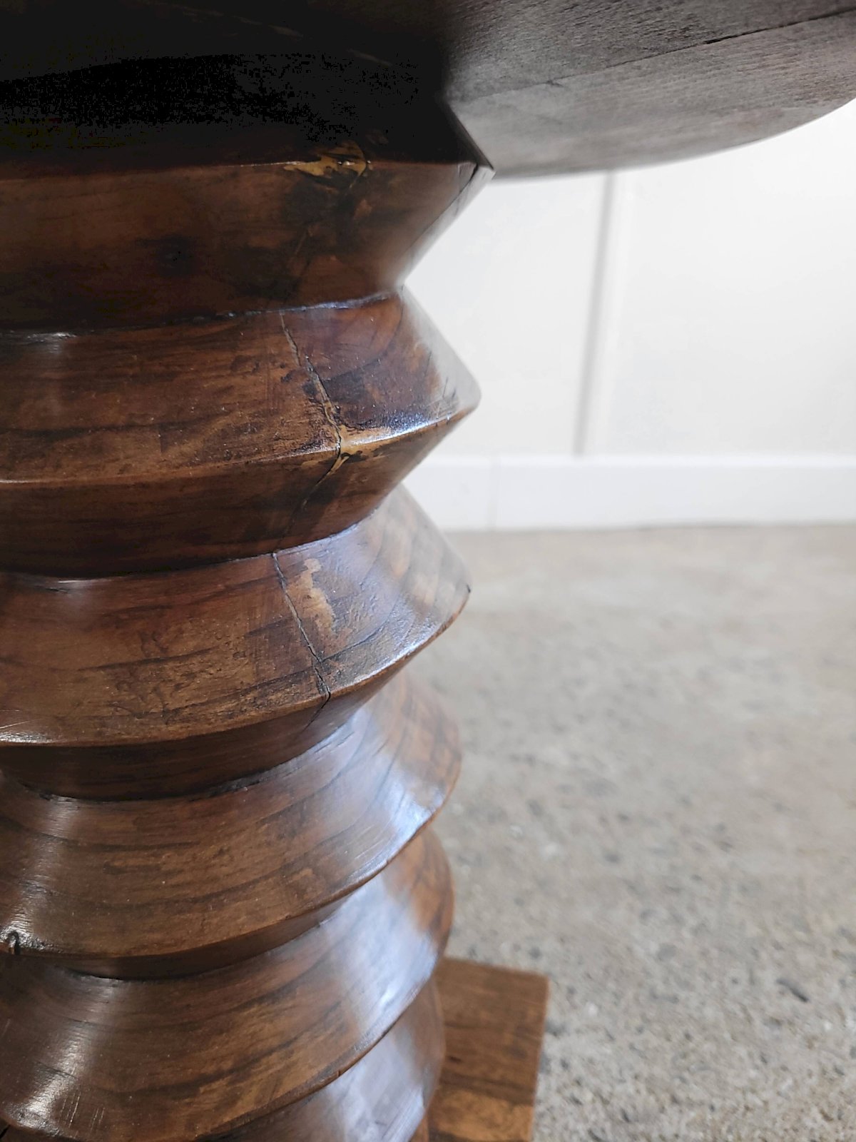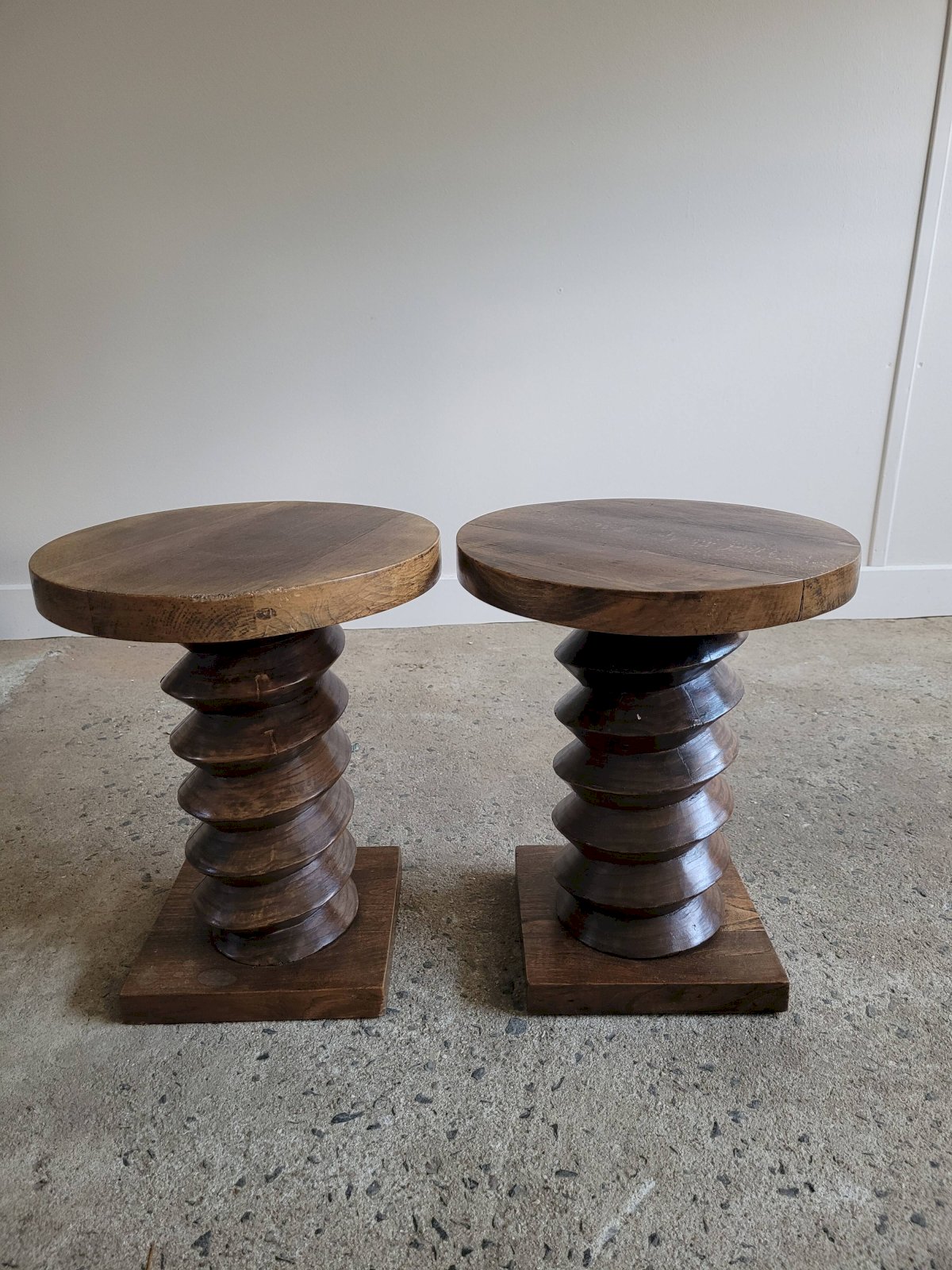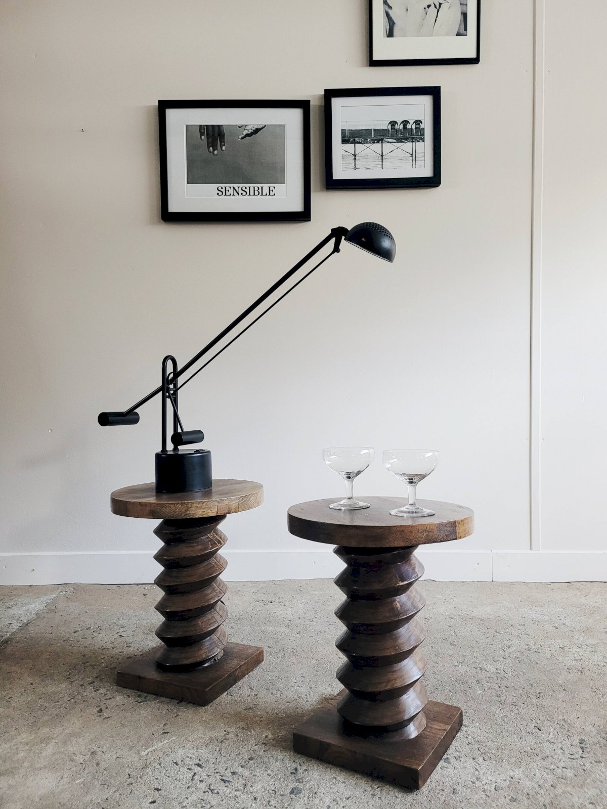 Combining brutalist and artisanal styles, these two iconic pieces are sculpted from solid wood.