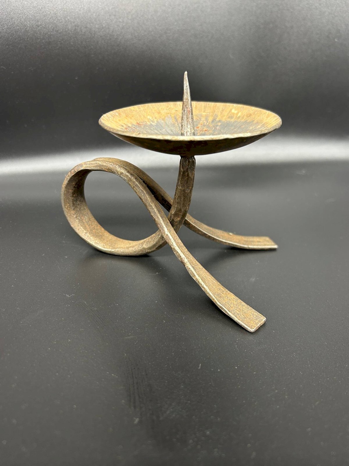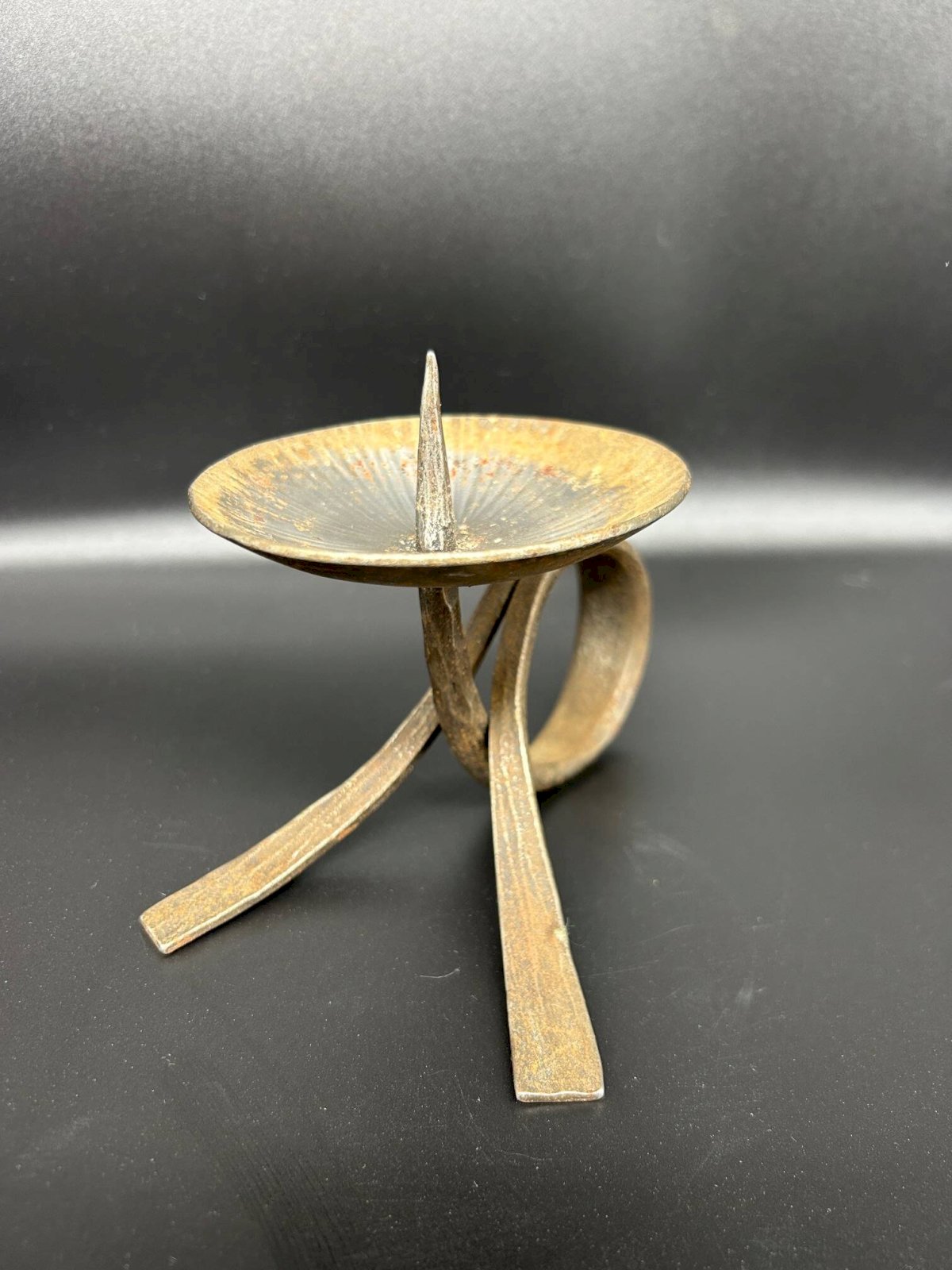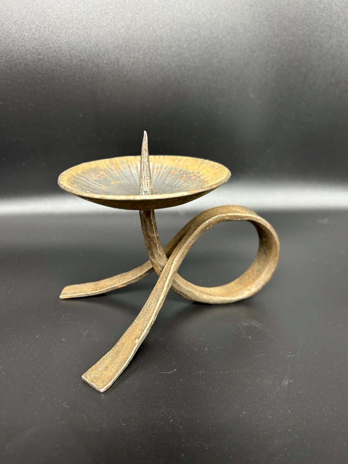 small vintage brutalist iron candle holder in good condition